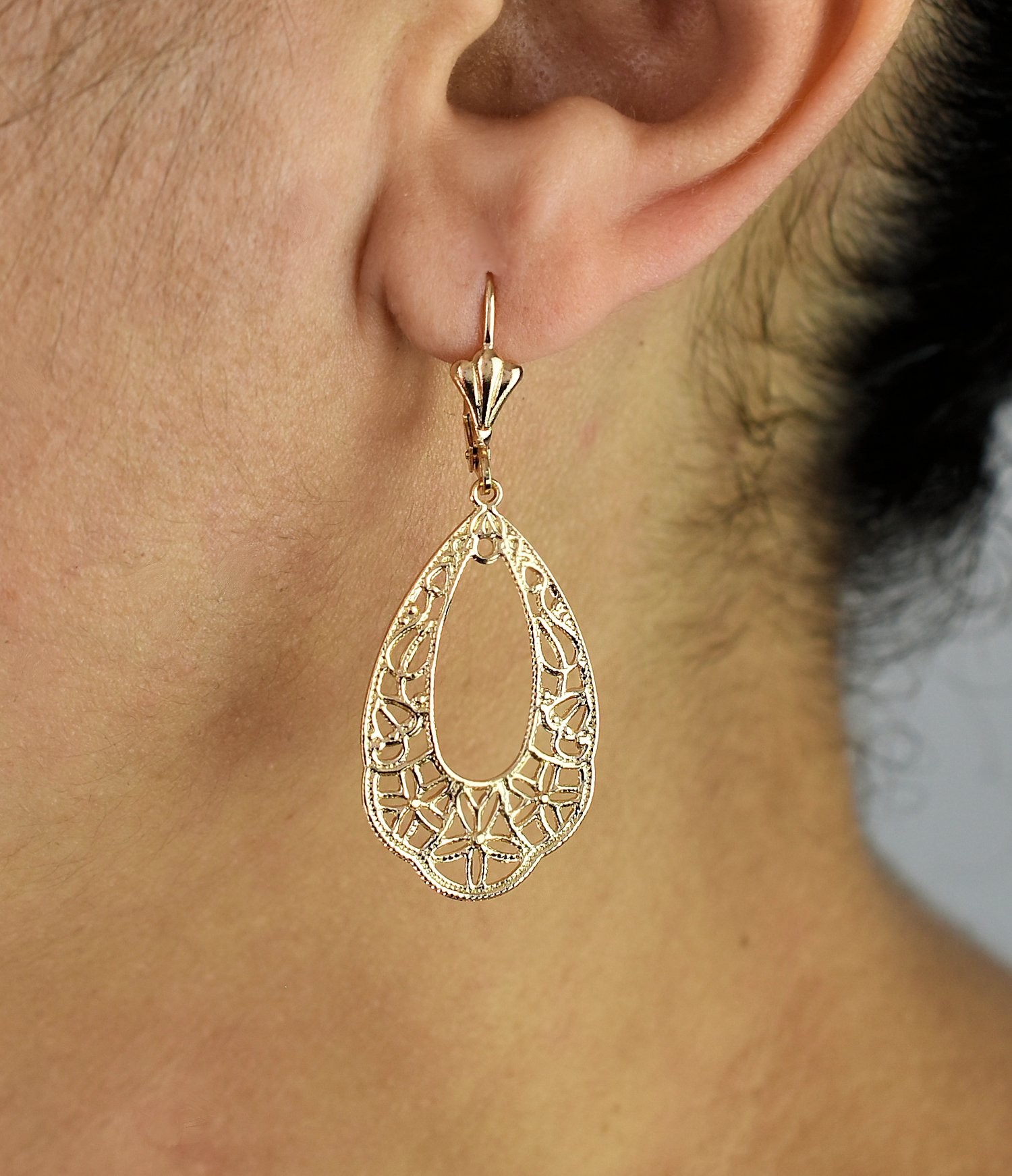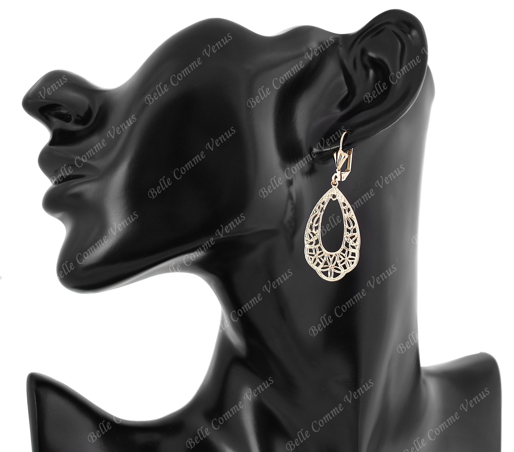 Le plaqué or 750 3 microns garantit une brillance dorée durable. L’arabesque de fleurs crée une richesse visuelle captivante qui attire le regard sans ostentation. Le design dormeuses offre confort et sécurité pour un port quotidien ou lors d’occasions spéciales. Ces boucles allient tradition orientale et féminité florale dans un équilibre parfait. Un bijou qui traverse les cultures et les tendances avec la même élégance raffinée.