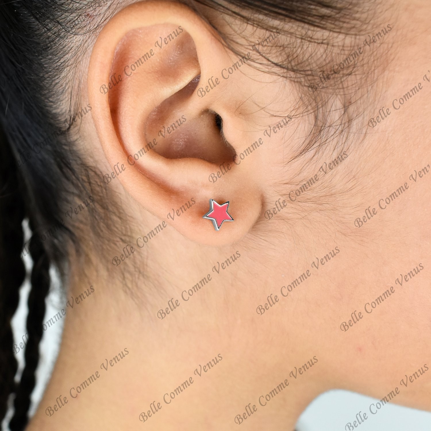 Les boucles d'oreilles enfant étoile émail coloré Argent 925 Rhodié sont des bijoux qui illuminent avec éclat et apportent une fantaisie céleste.