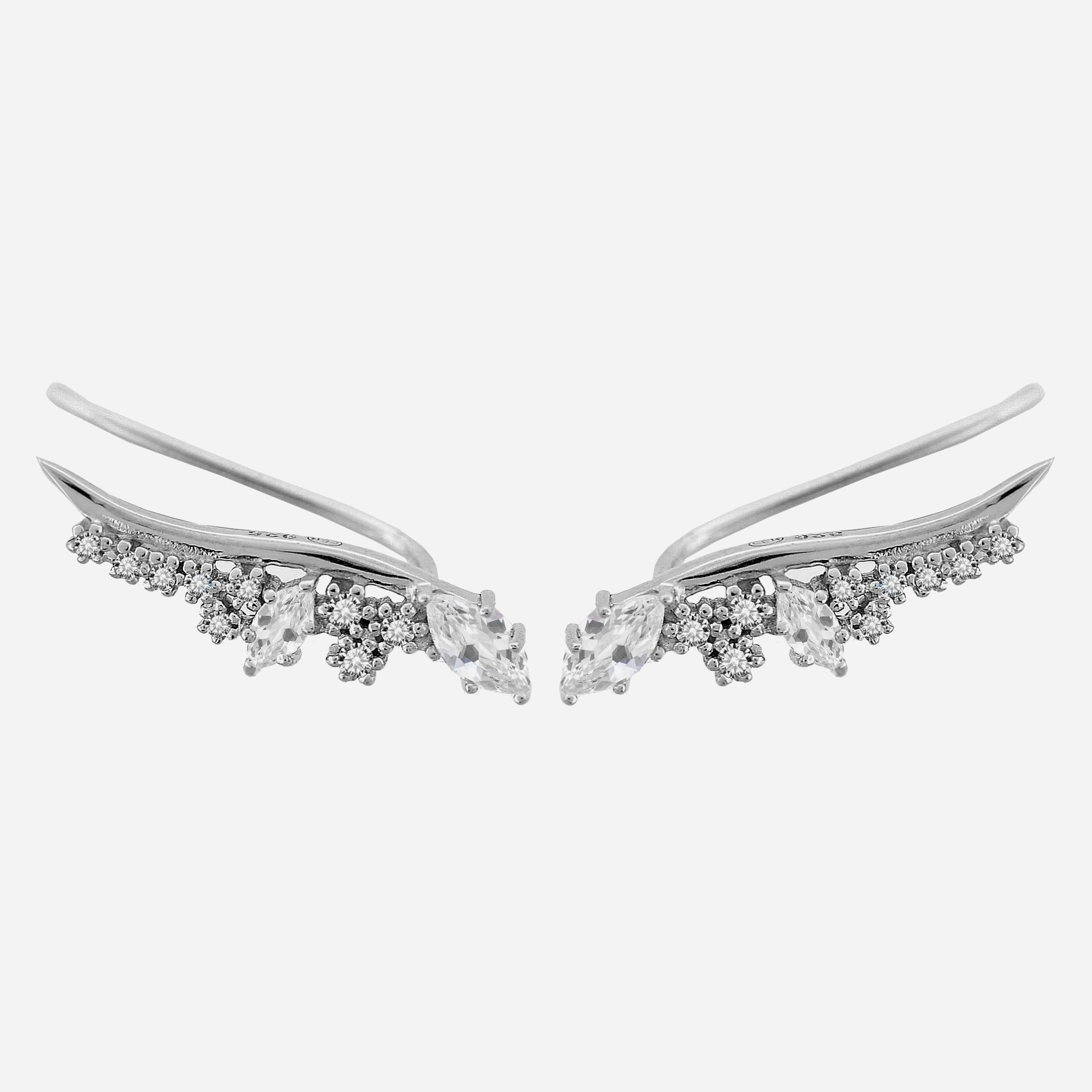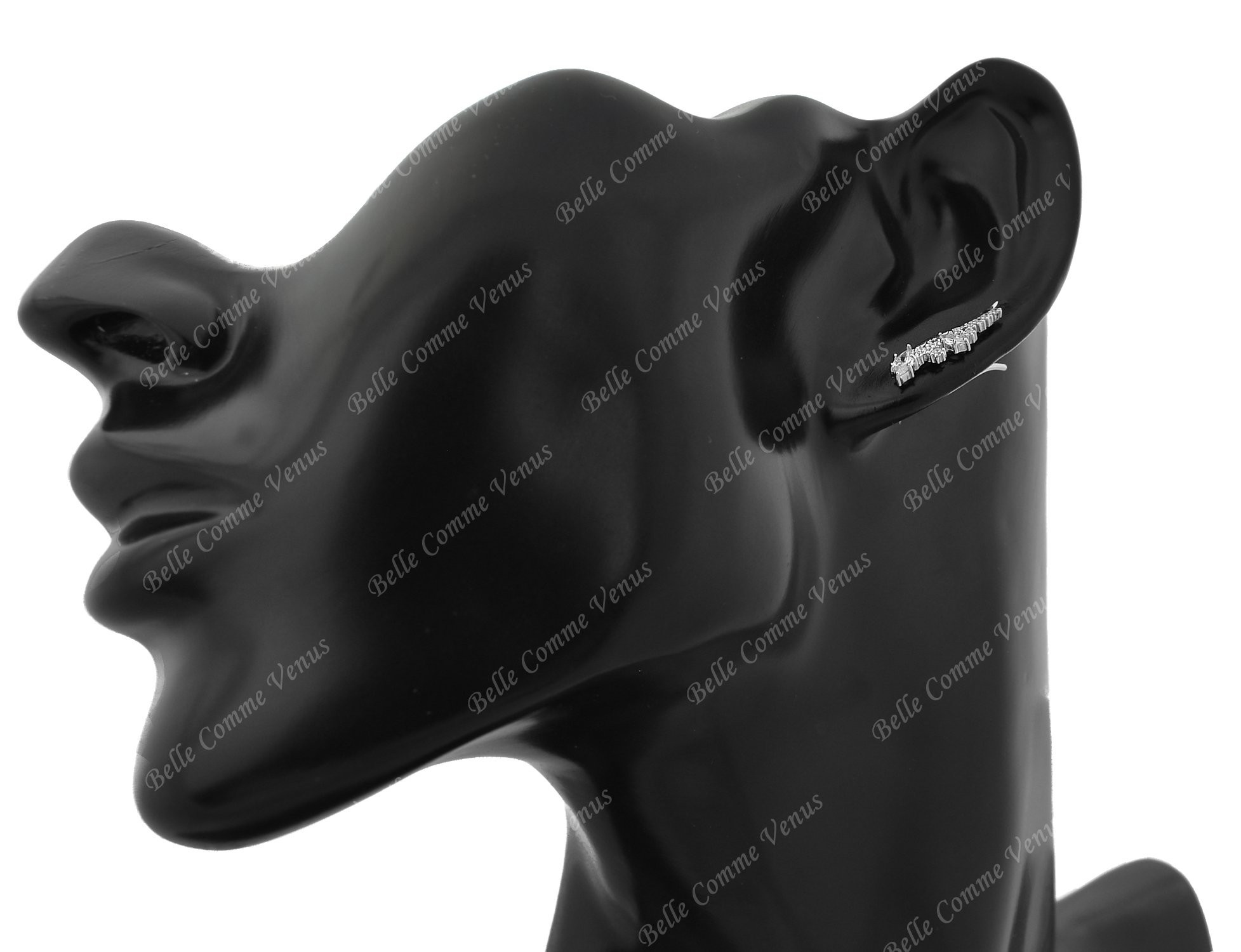 Ces boucles d’oreilles grimpantes contour de lobe redéfinissent l’élégance moderne. Le design grimpant épouse parfaitement la courbe naturelle de l’oreille, créant une ligne lumineuse continue sertie d’oxydes de zirconium scintillants. Ce bijou en argent 925 rhodié transforme l’oreille en œuvre d’art minimaliste où chaque pierre capture et diffuse la lumière avec intensité.
