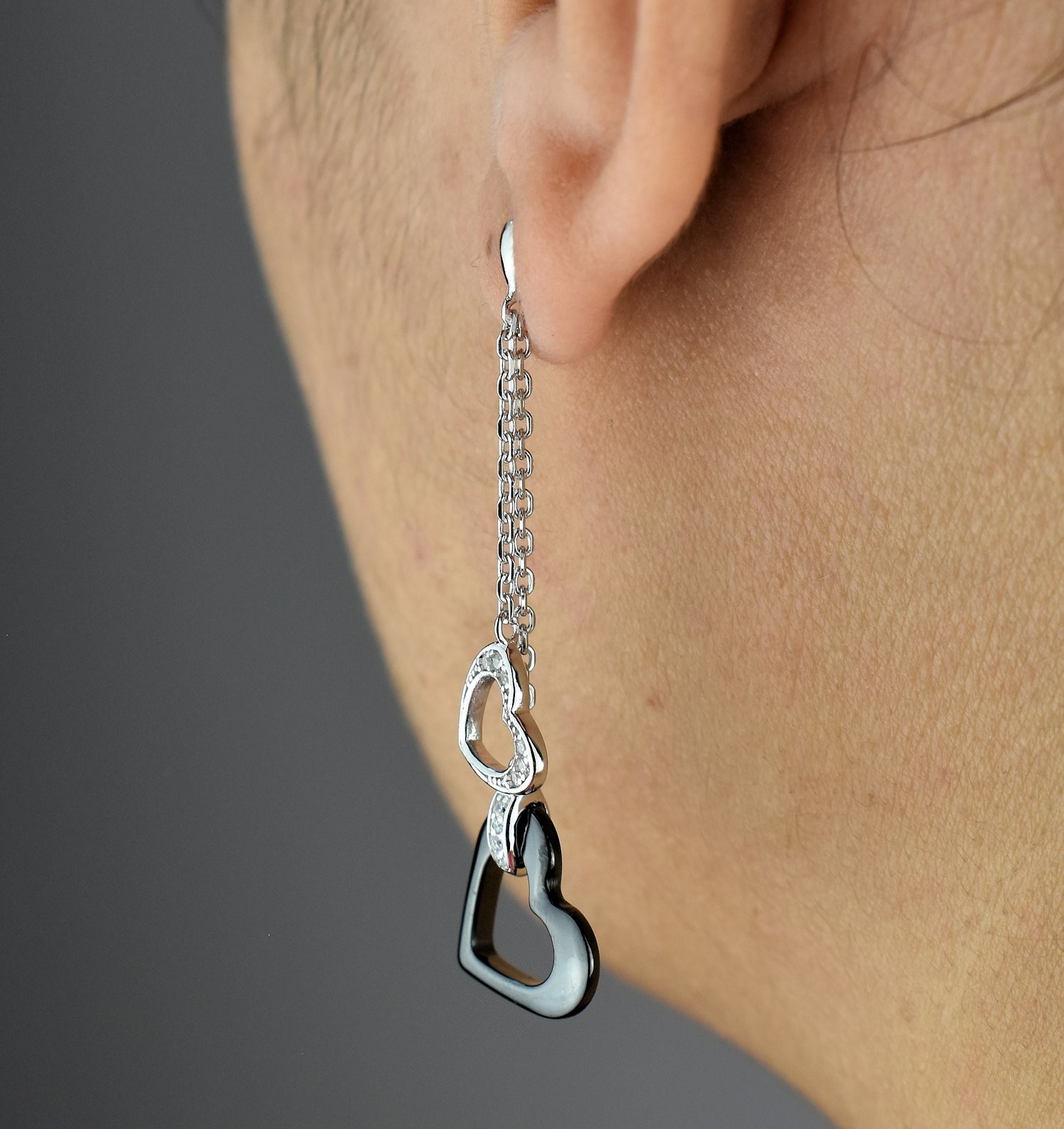 Les 2 cœurs symbolisent amour et complicité, sublimés par le jeu de matières entre oxydes de zirconium scintillants et céramique noire profonde. L’argent 925 rhodié garantit brillance durable. Des boucles qui affirment un style romantique contemporain avec finition joaillière précieuse et audace raffinée.