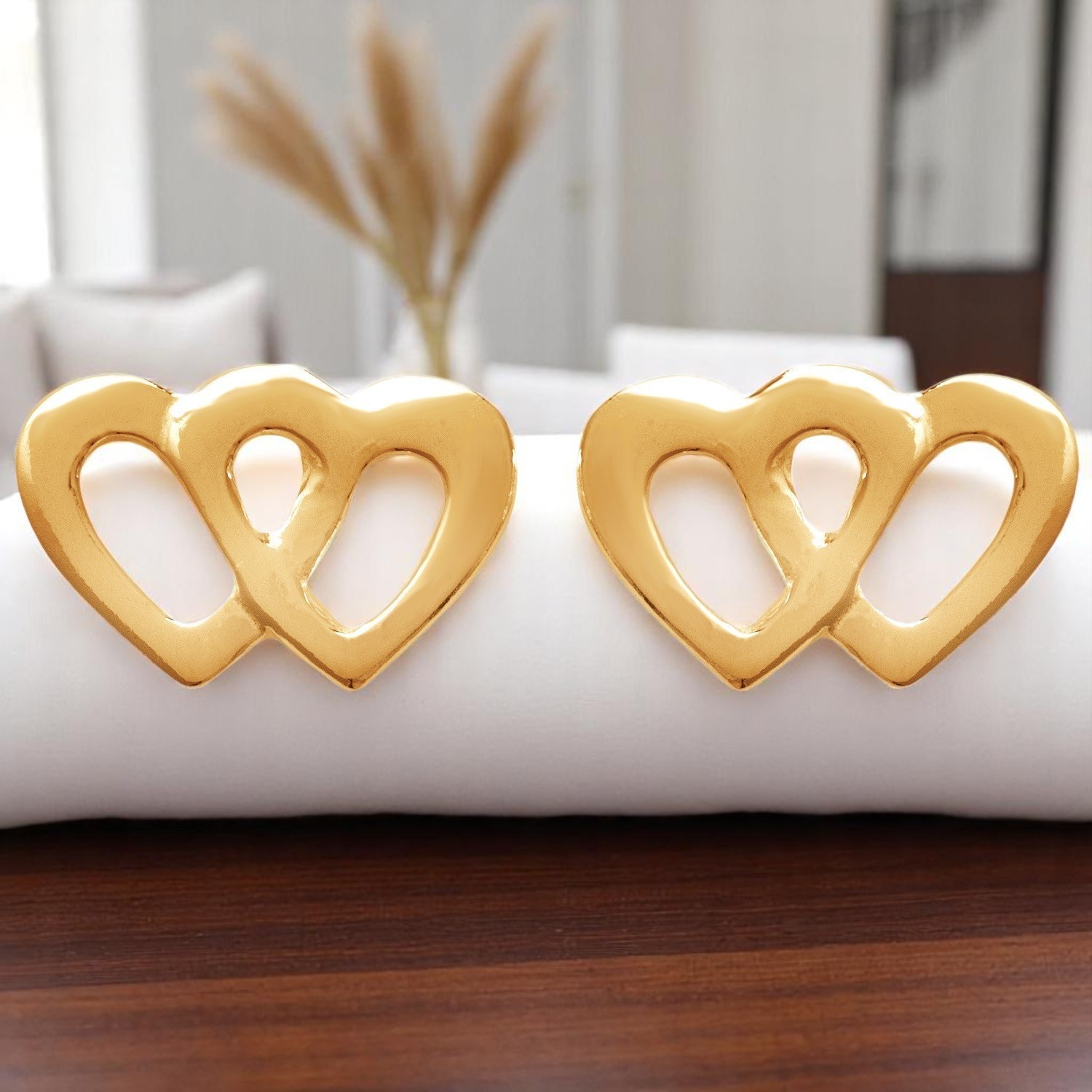 Boucles d’oreilles deux coeurs plaqué or : symbole d’amour double