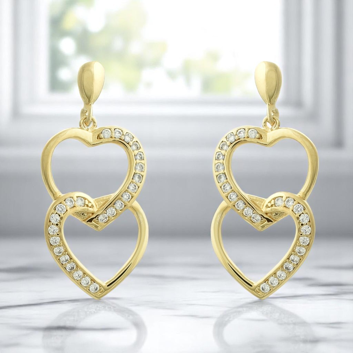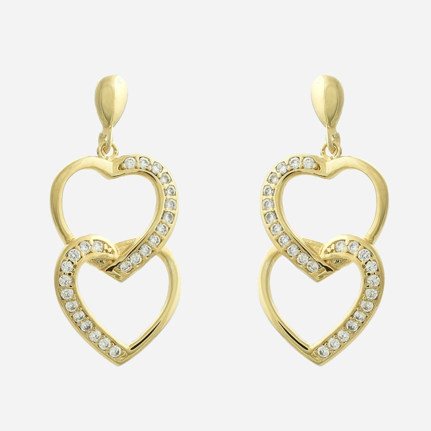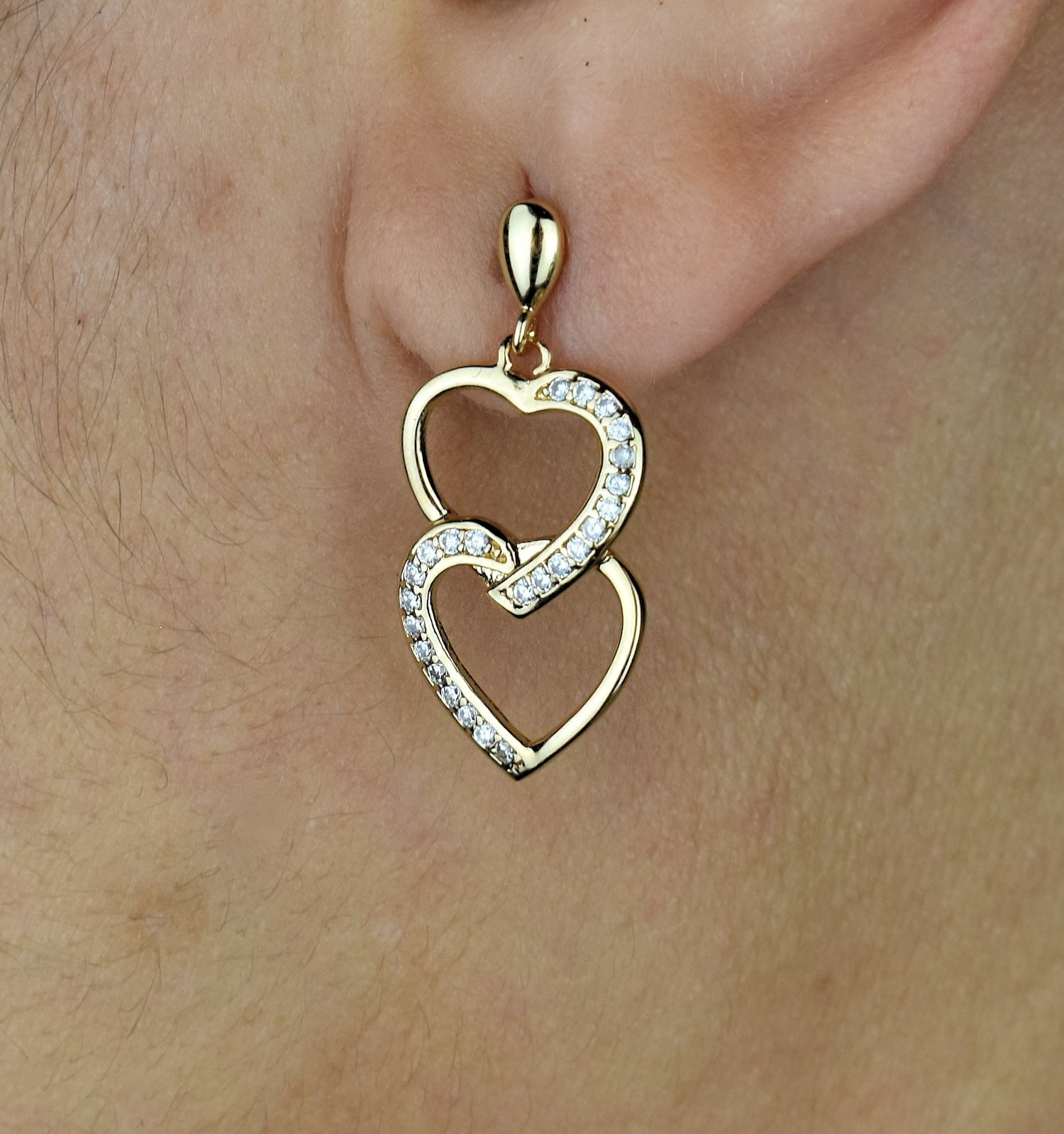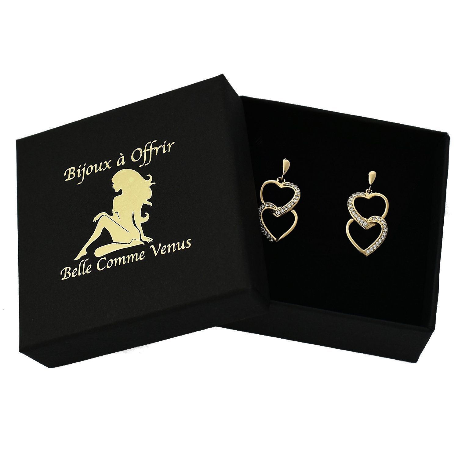 Des boucles d’oreilles 2 coeurs superposés zirconium plaqué or qui célèbrent l’amour en relief