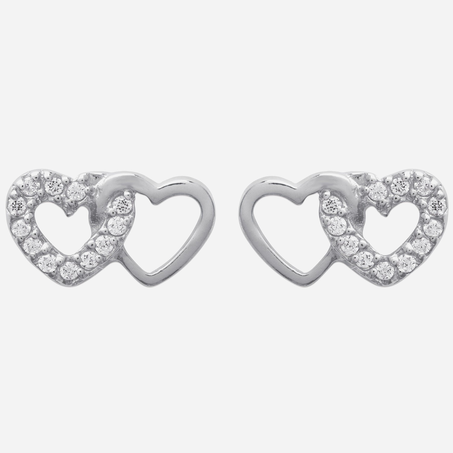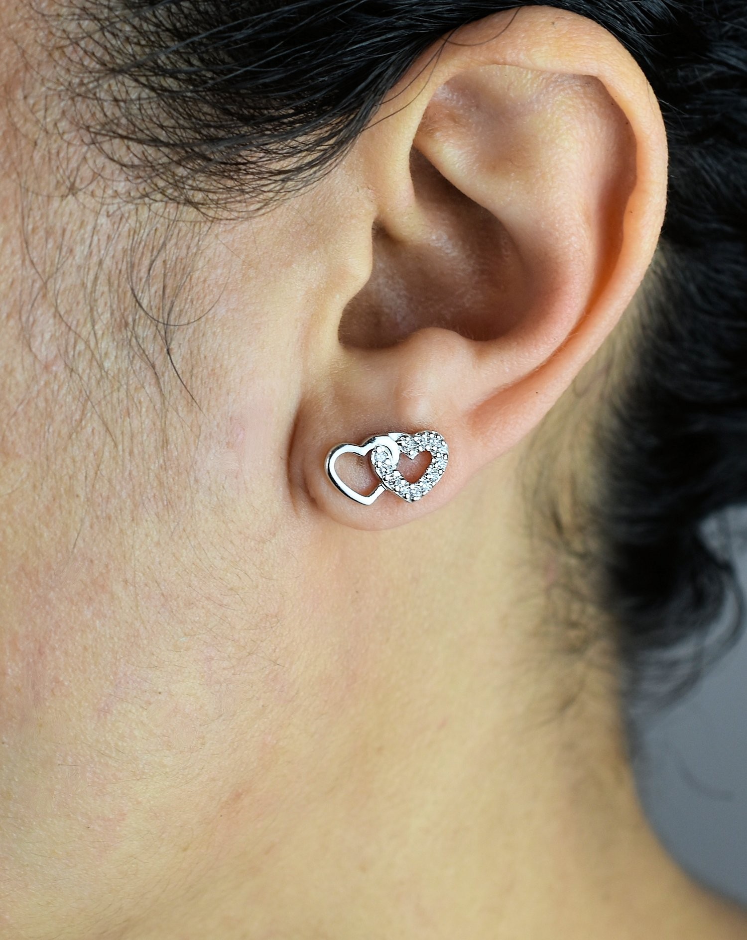 Ajoutez une touche de romantisme à vos tenues avec nos boucles d'oreilles 2 coeurs enlacés en oxyde de zirconium, conçues en Argent 925 Rhodié.
