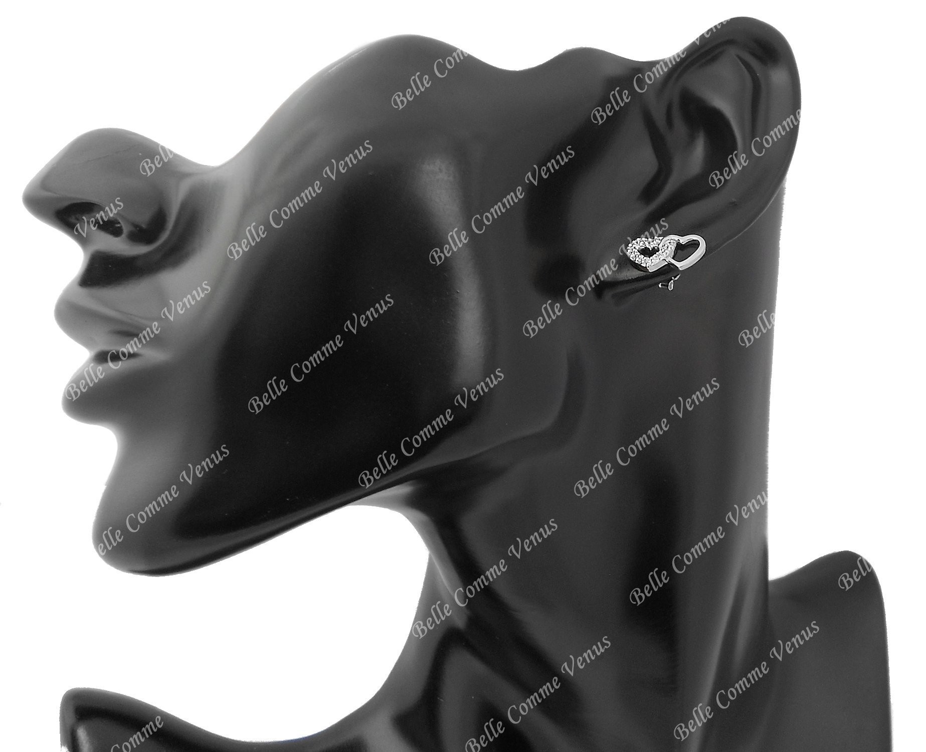 Boucles d’oreilles 2 cœurs enlacés argent 925 rhodié avec zirconium. Design romantique élégant. Symbolique d’union et complicité.