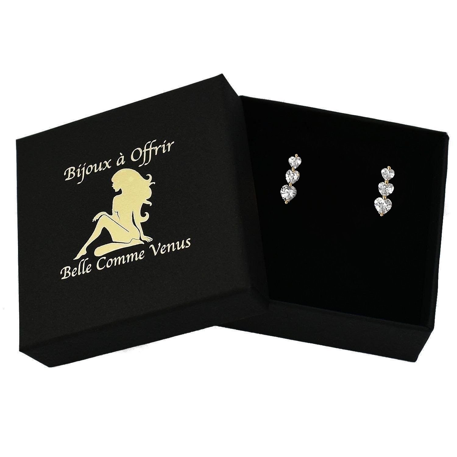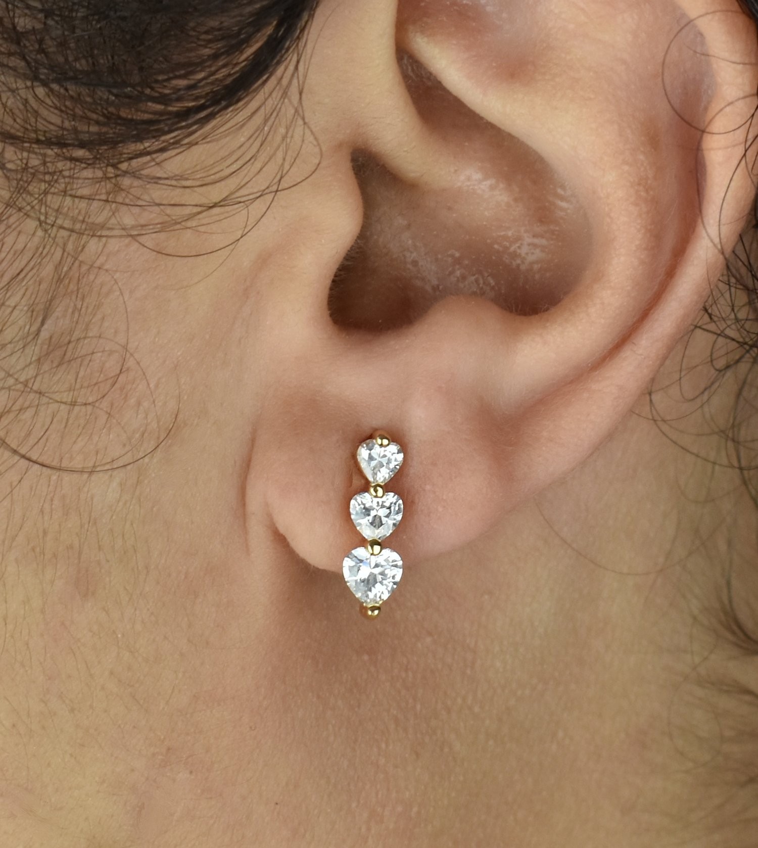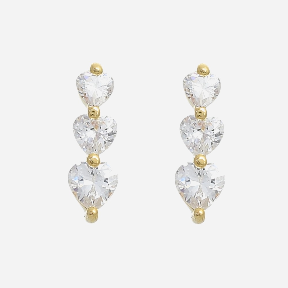 Boucles d’oreilles trois coeurs oxyde zirconium plaqué or : triple symbole d’amour