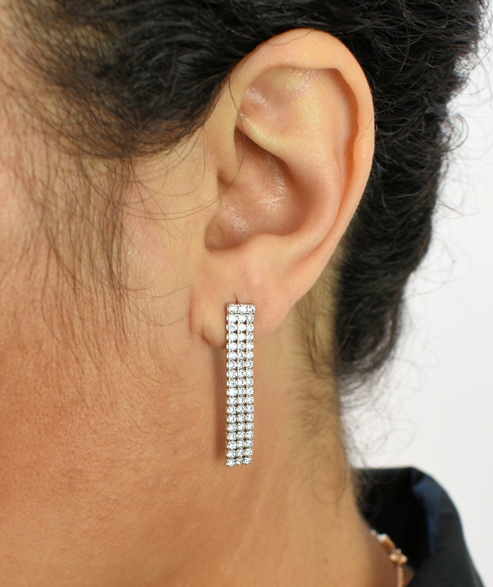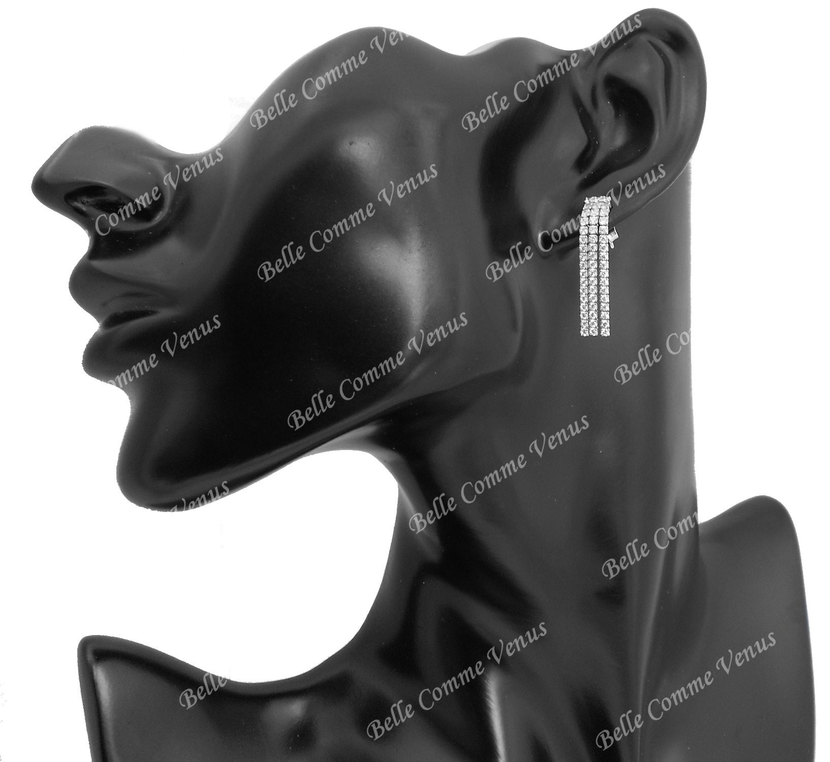 Boucles d’oreilles trois rangs oxydes zirconium argent 925 : cascade scintillante