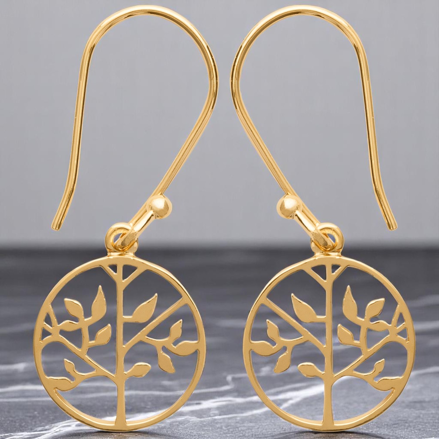 Boucles d’oreilles arbre vie plaqué or cercle : sagesse ancestrale et harmonie