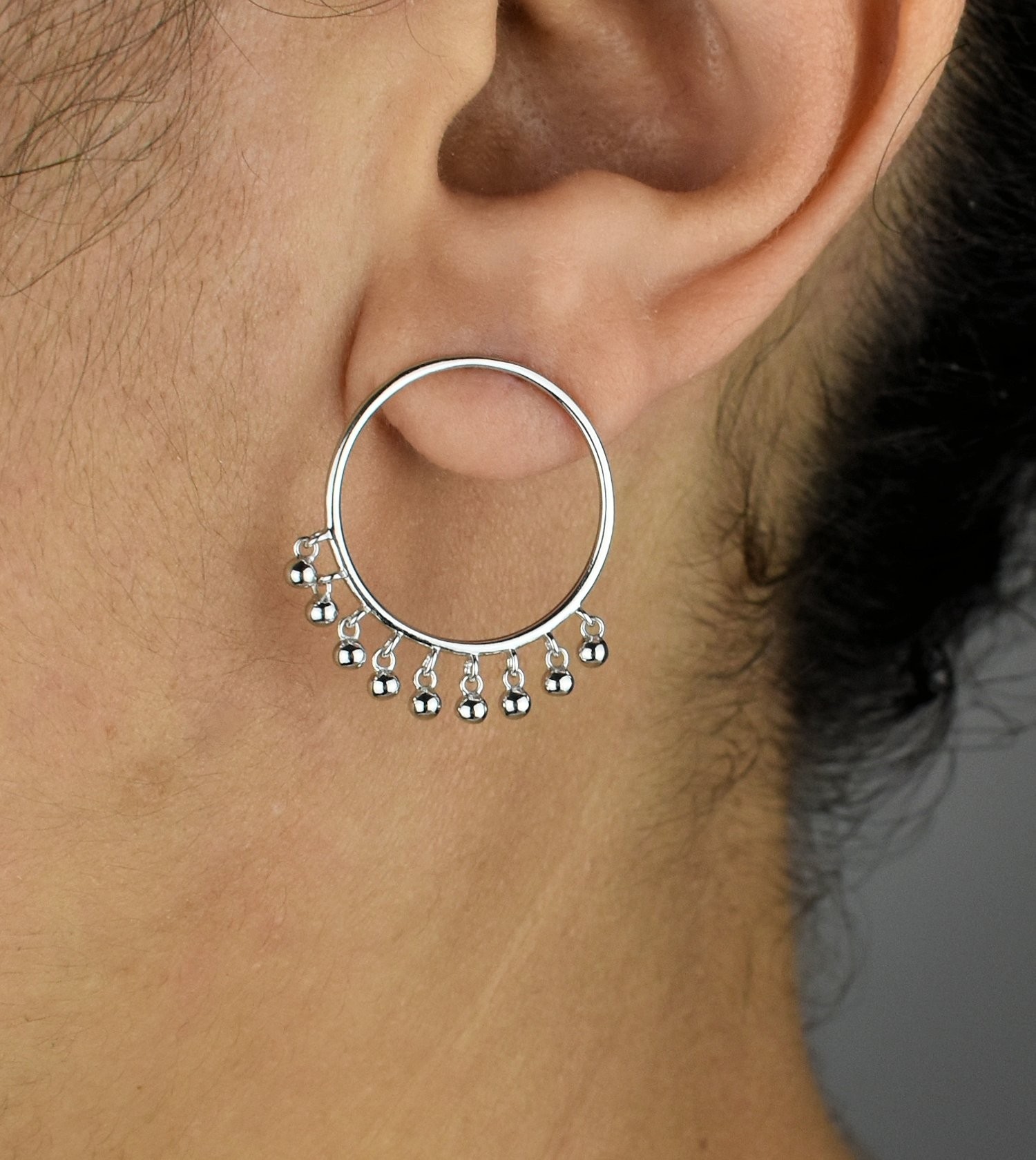 Boucles d’oreilles cercle pampilles boules argent 925 : mouvement moderne élégant
