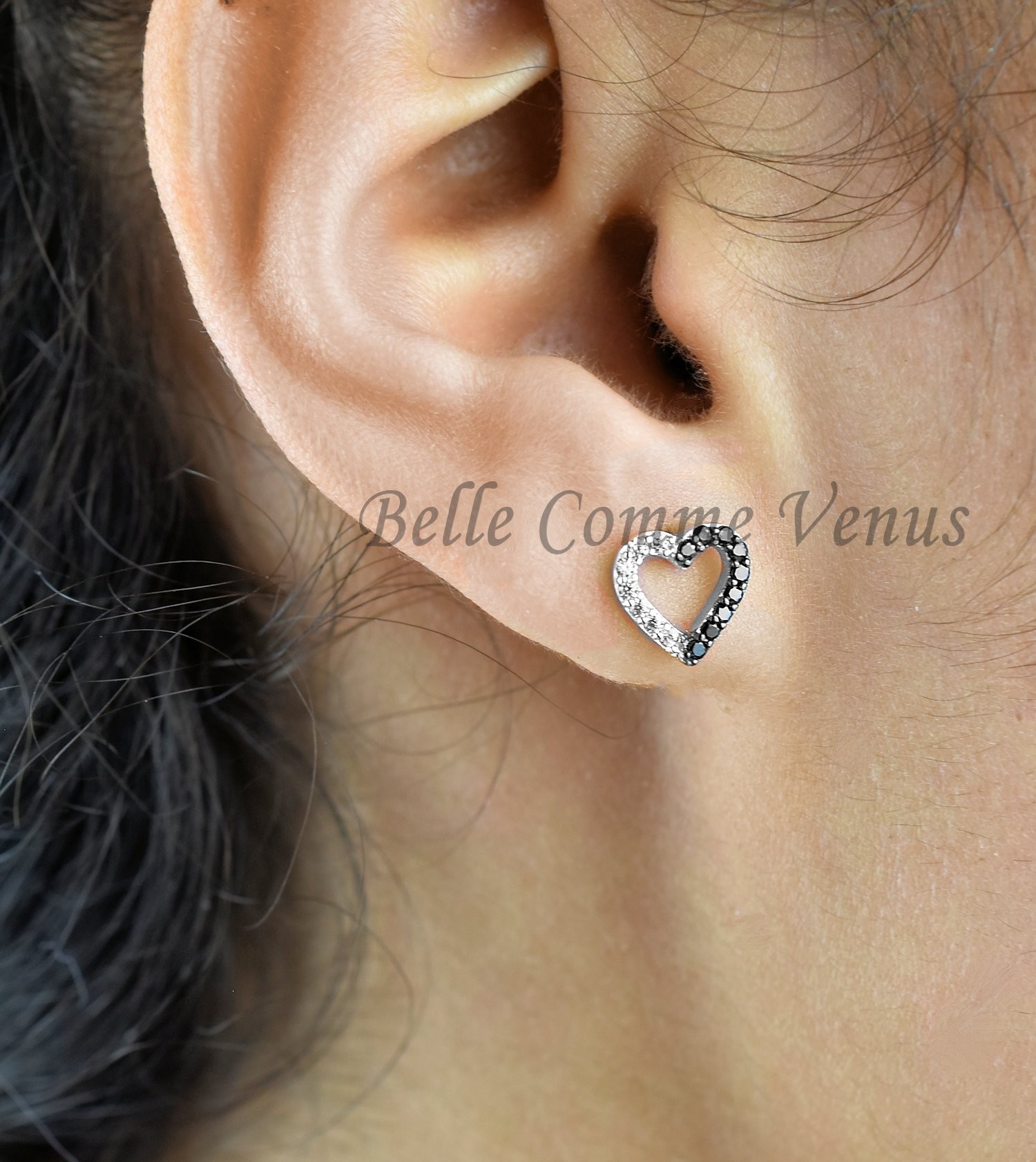 Les boucles d’oreilles coeur oxyde zirconium argent 925 rhodié célèbrent le symbole de l’amour avec contraste bicolore sophistiqué. Le cœur serti d’oxydes de zirconium blancs et noirs crée un jeu de lumière captivant, sublimant votre visage avec brillance contrastée et raffinement contemporain intemporel.