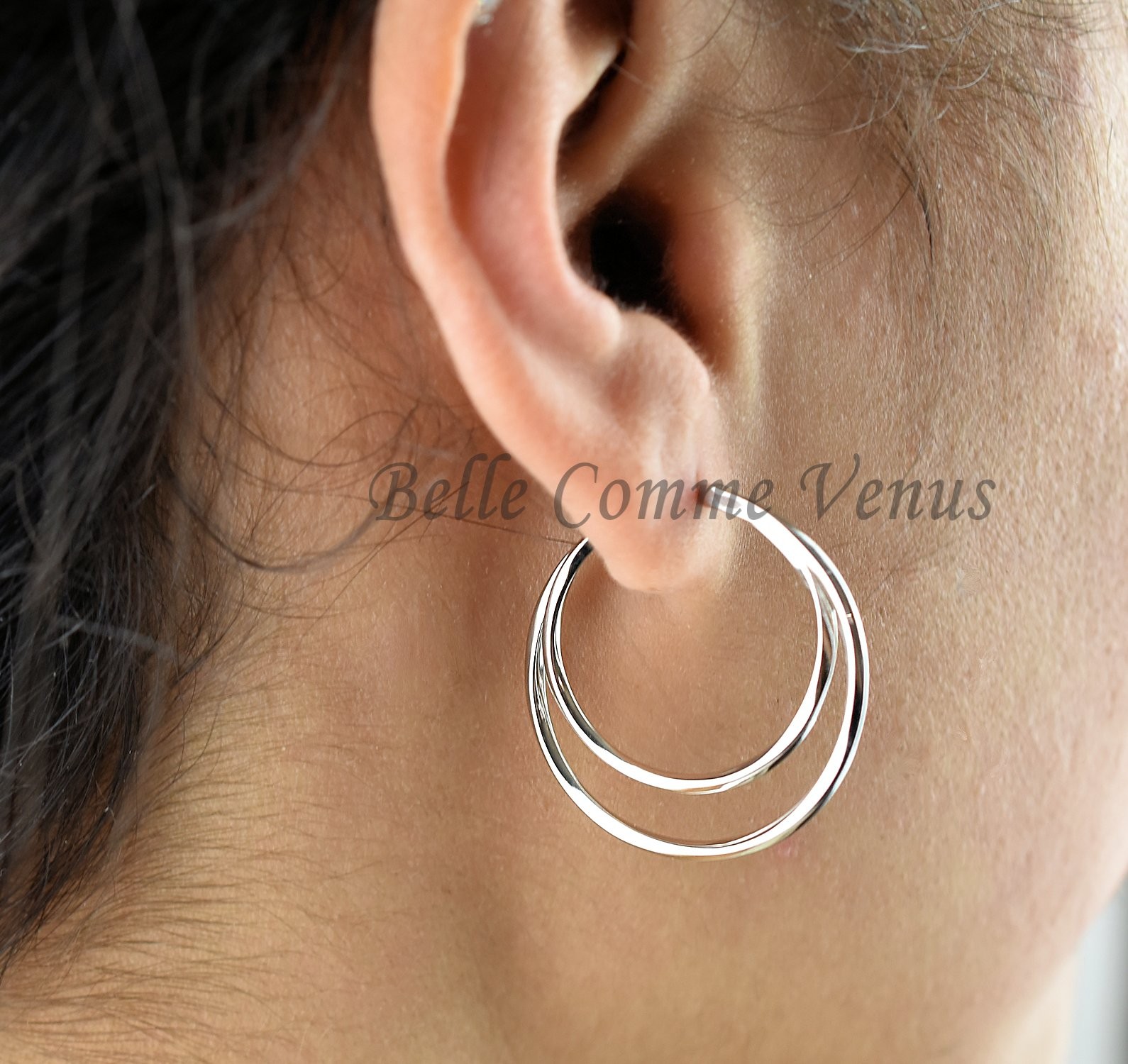Boucles d’Oreilles Créole 2 Cercles Argent : L’Élégance Moderne