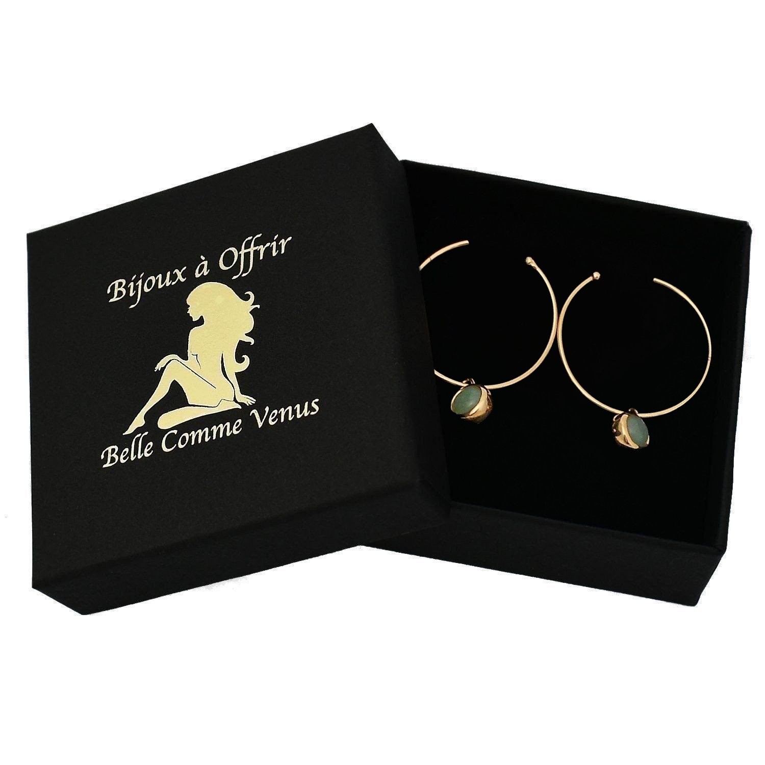 Boucles d’Oreilles Créole Aventurine Plaqué Or : L’Élégance Naturelle