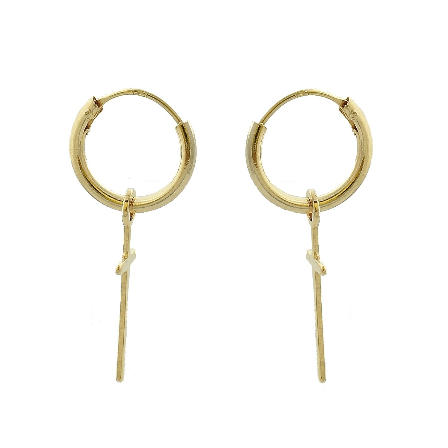Des créoles classiques d’où pend une croix délicate en plaqué or 750 – 3 microns. Cette alliance entre le classique indémodable des créoles et le symbole protecteur universel crée un bijou qui traverse temps et cultures avec élégance.