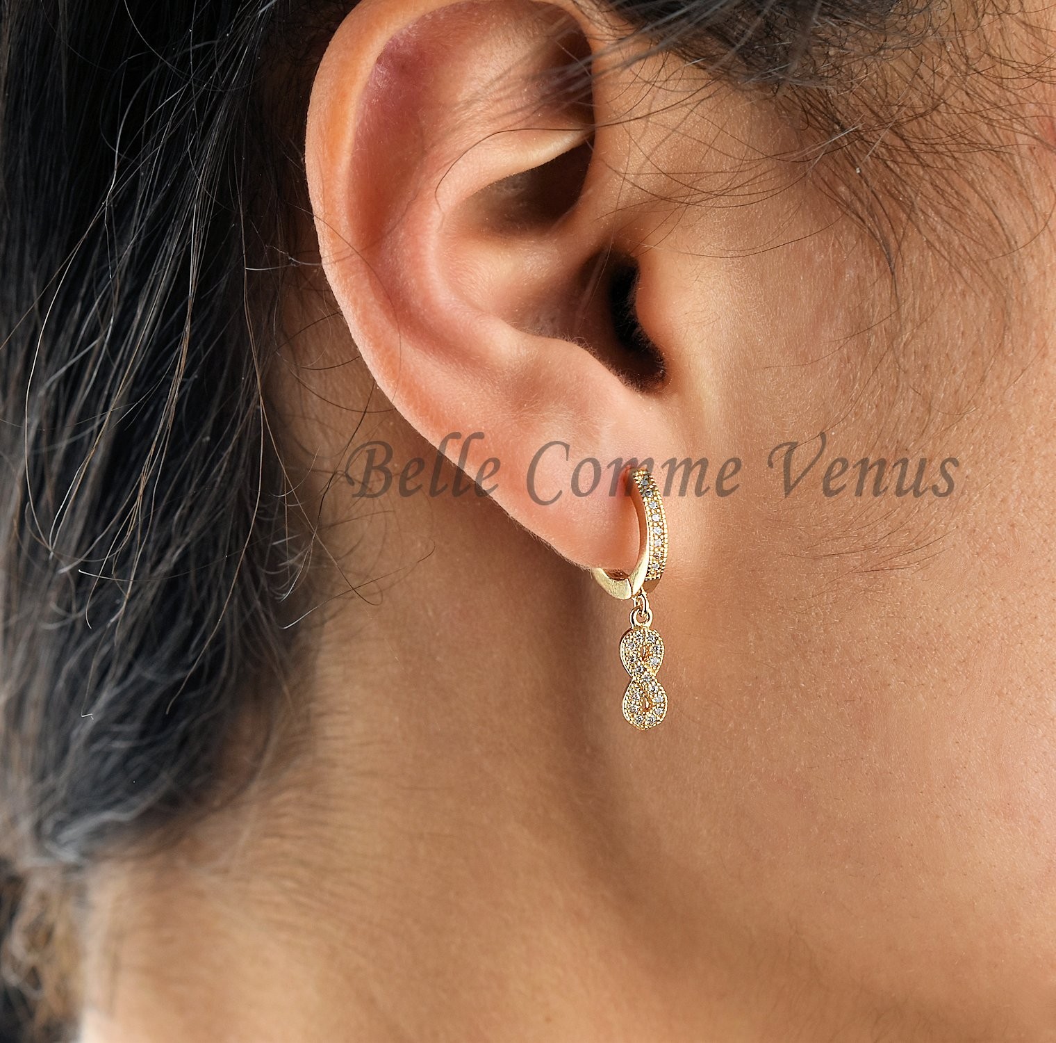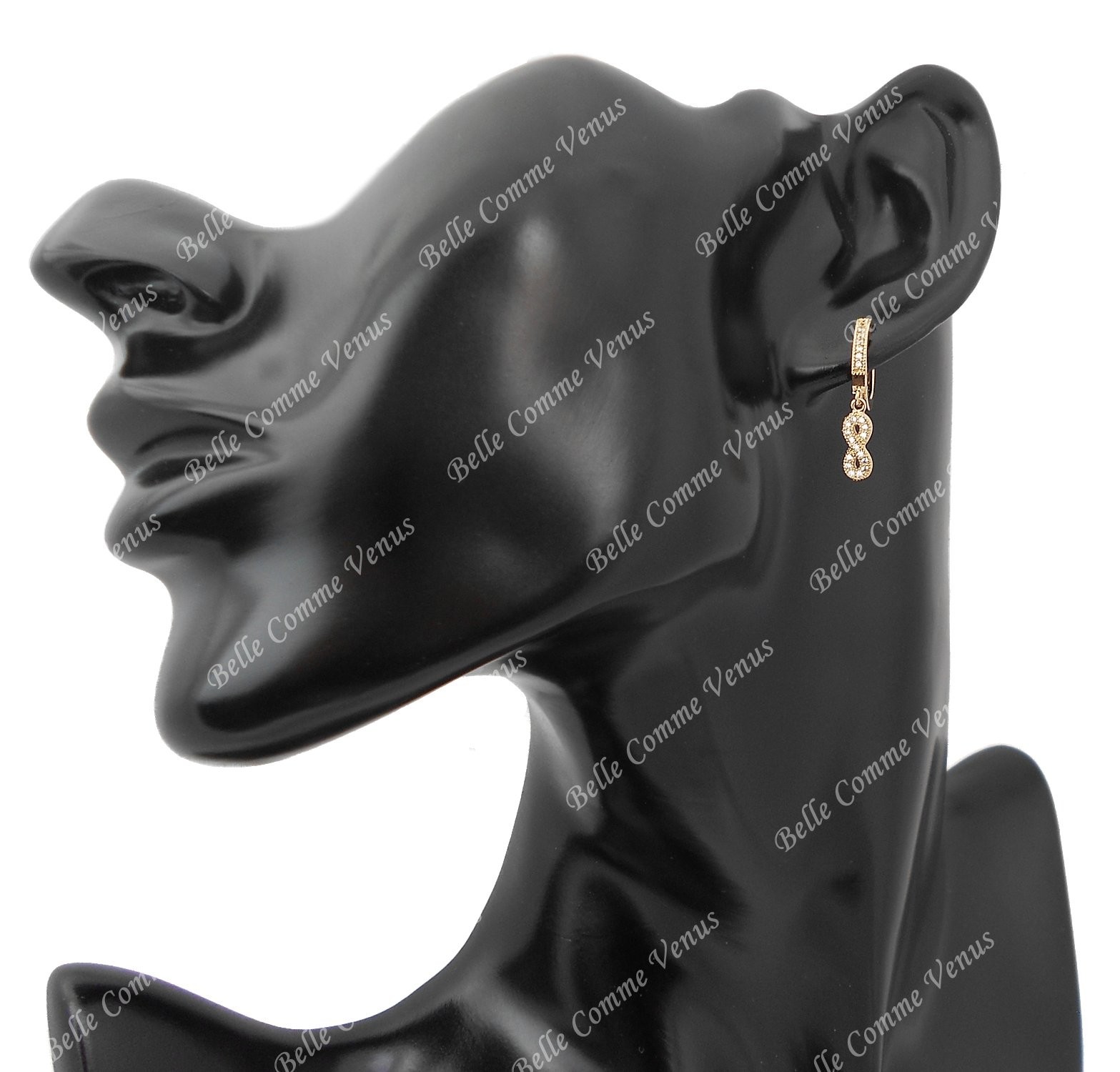 Des boucles d’oreilles infini en plaqué or 750 3 microns résistant qui traversent le temps, pour un symbole d’éternité scintillant qui dure et vous accompagne au quotidien avec élégance et éclat préservé.