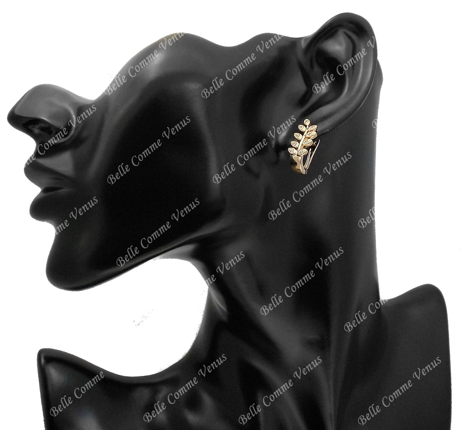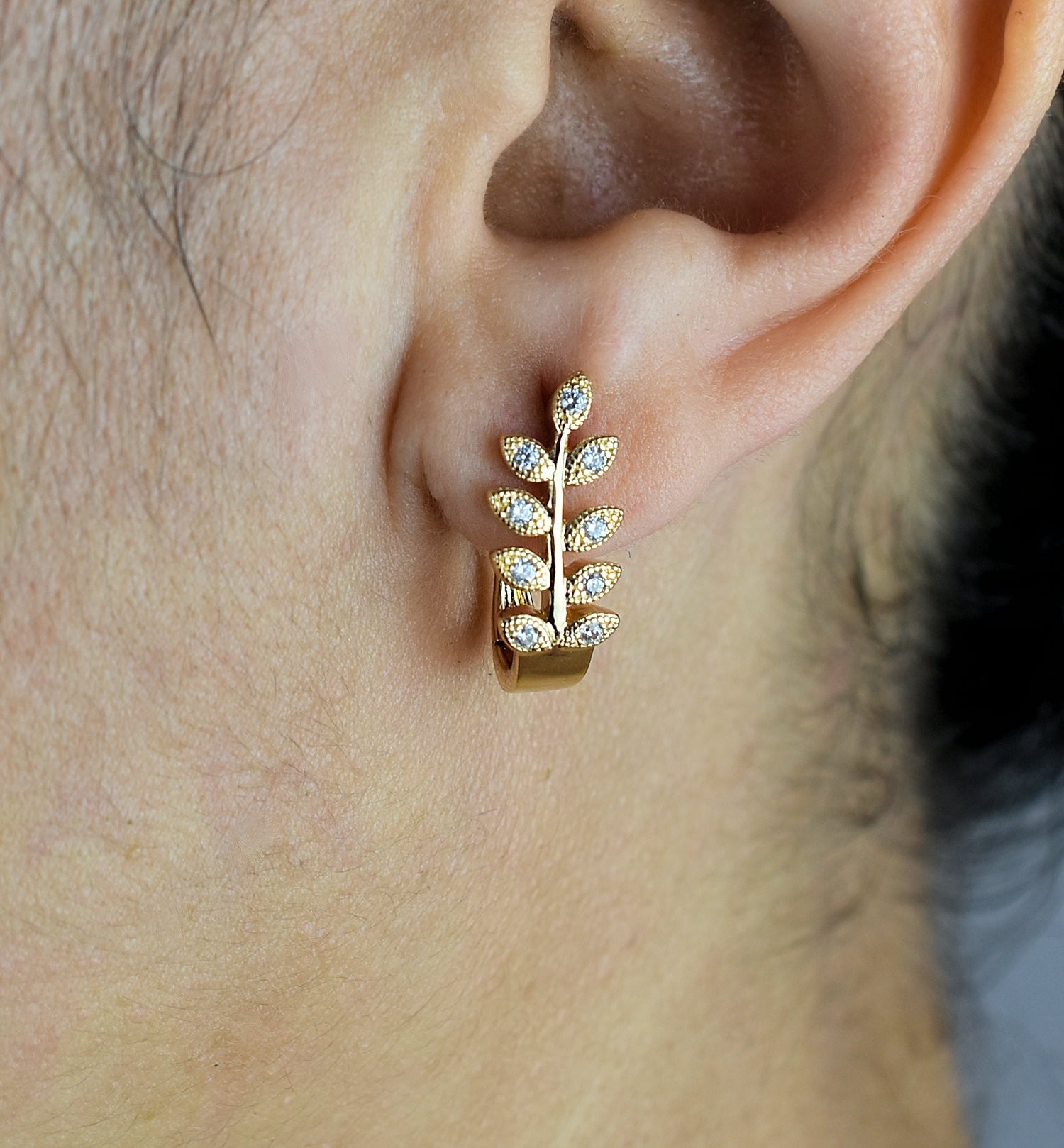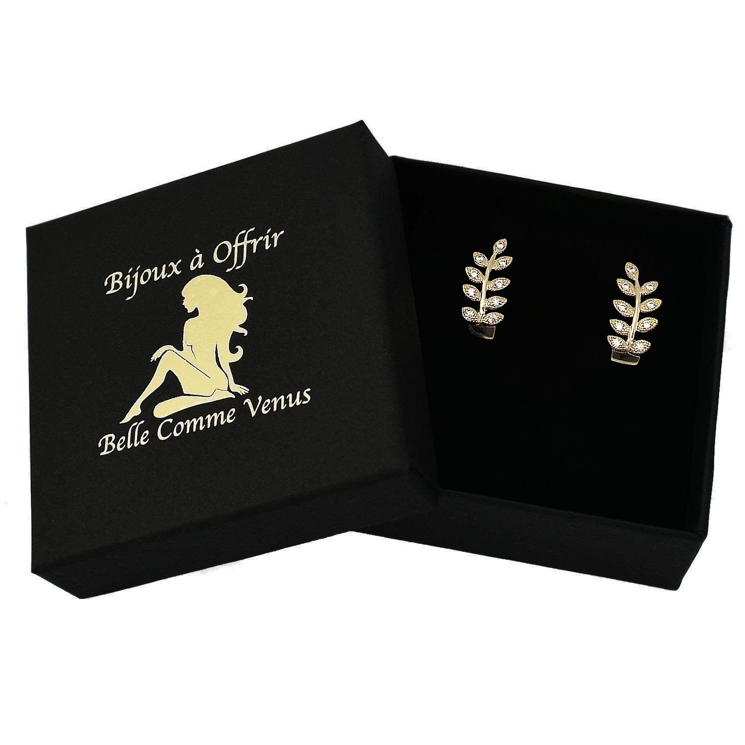 Boucles d’oreilles créole plaqué or feuille laurier oxyde zirconium : victoire scintillante