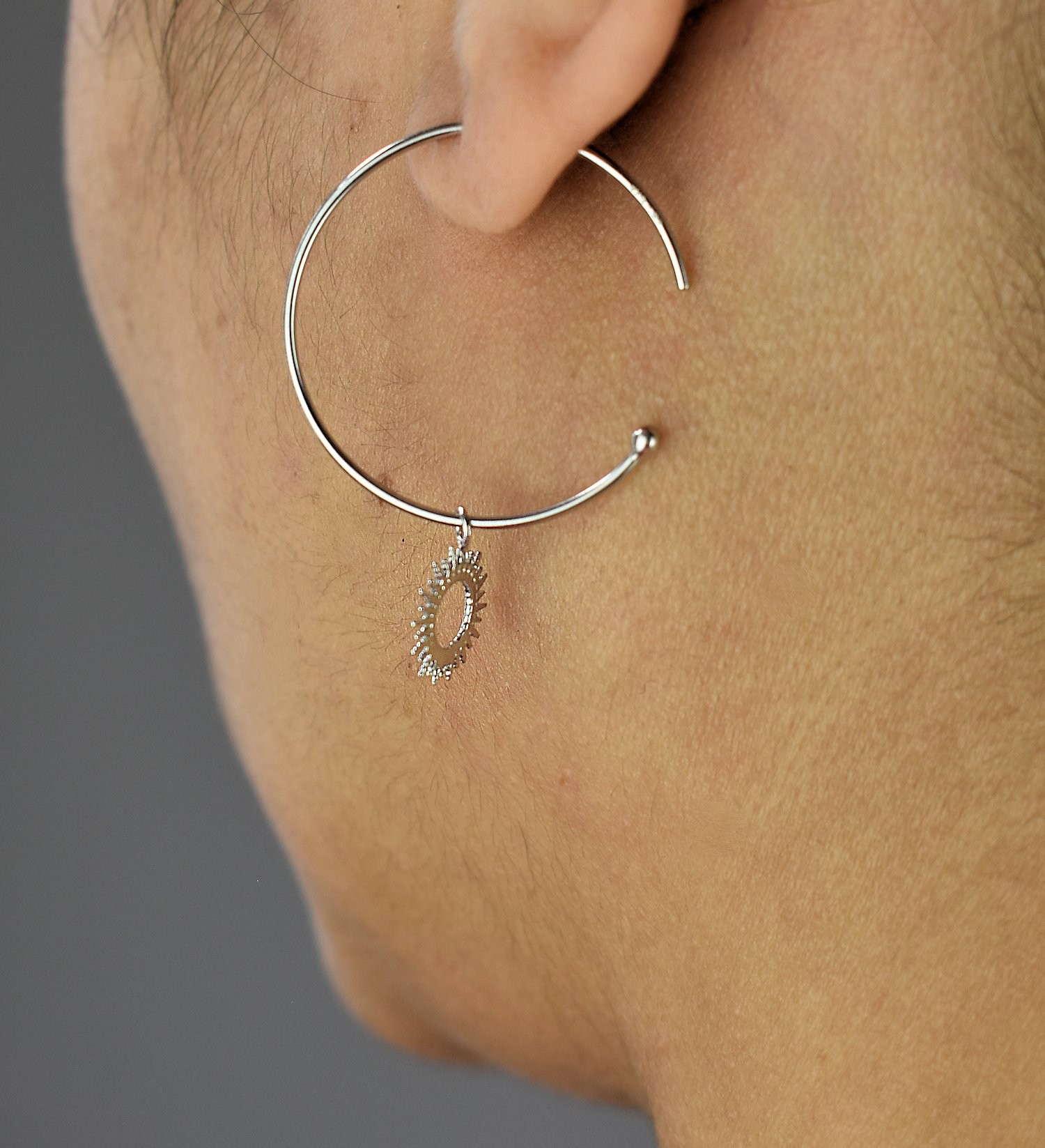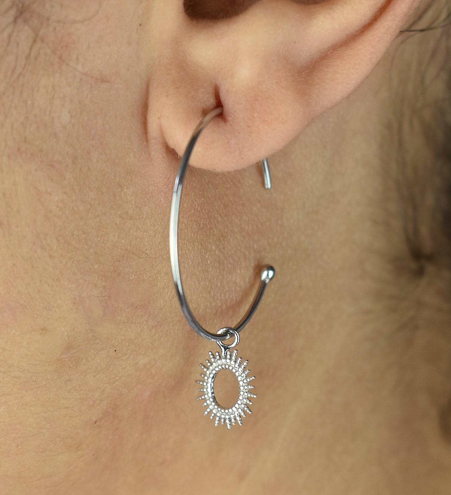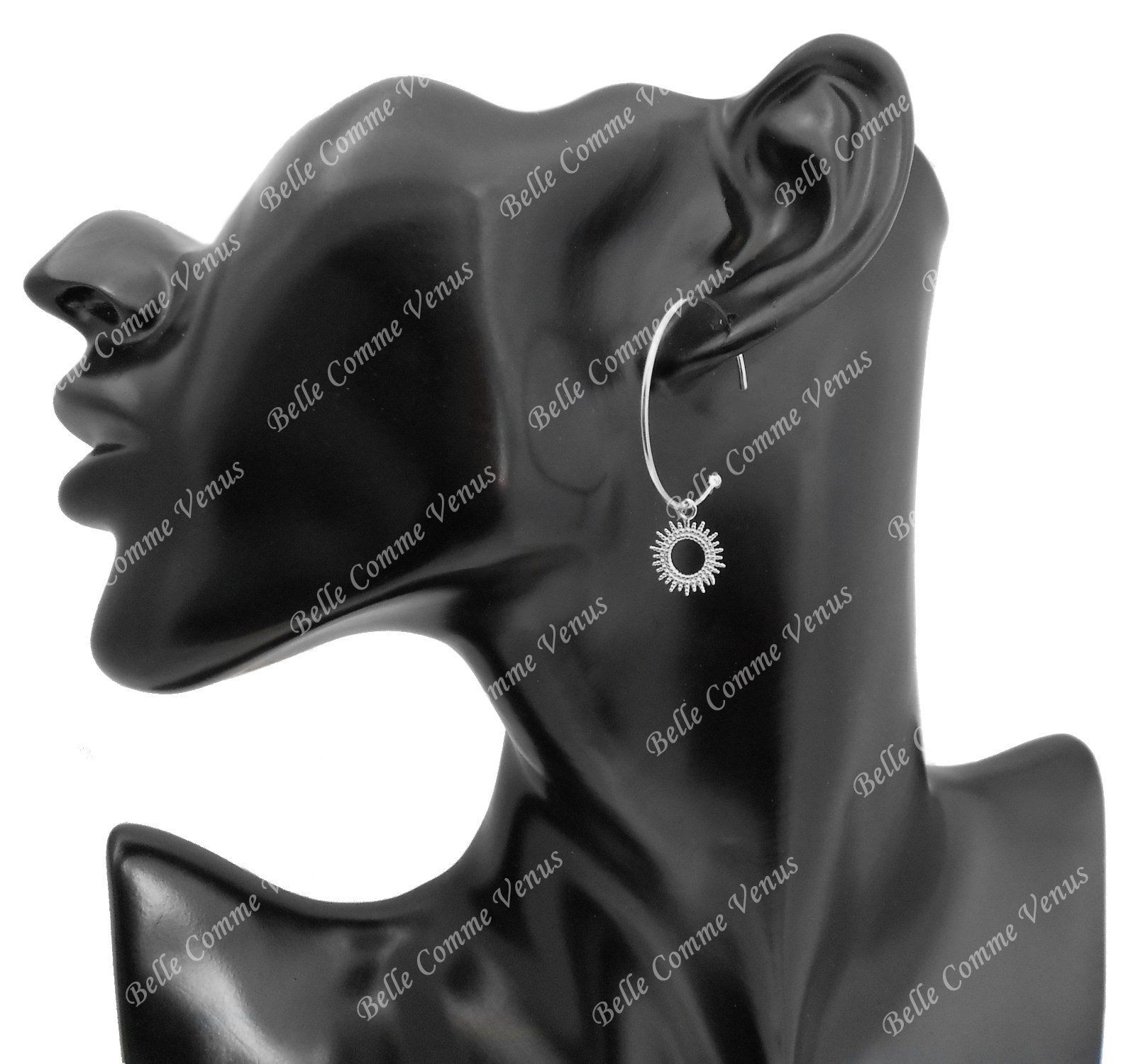 Les boucles d’oreilles créole soleil argent incarnent l’élégance intemporelle rehaussée de lumière symbolique. Ces créoles avec soleil pendant en argent 925 rhodié capturent la sophistication dans un design raffiné et radieux.