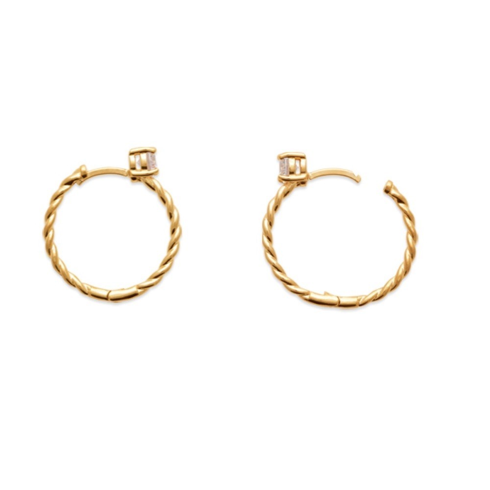 Boucles d’oreilles créole torsadée oxyde zirconium plaqué or : texture scintillante
