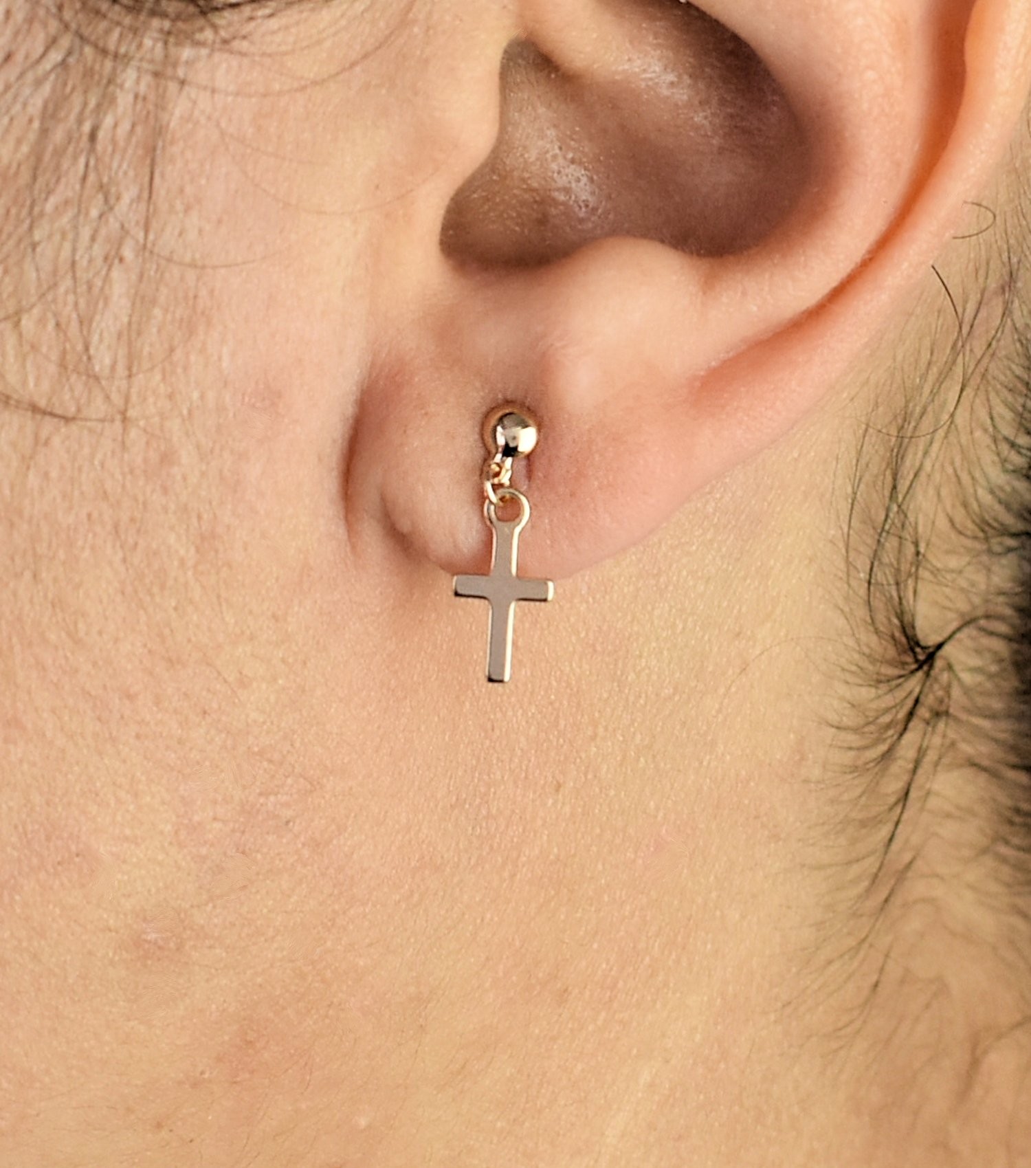 Boucles oreilles croix plaqué or spiritualité : amour et foi