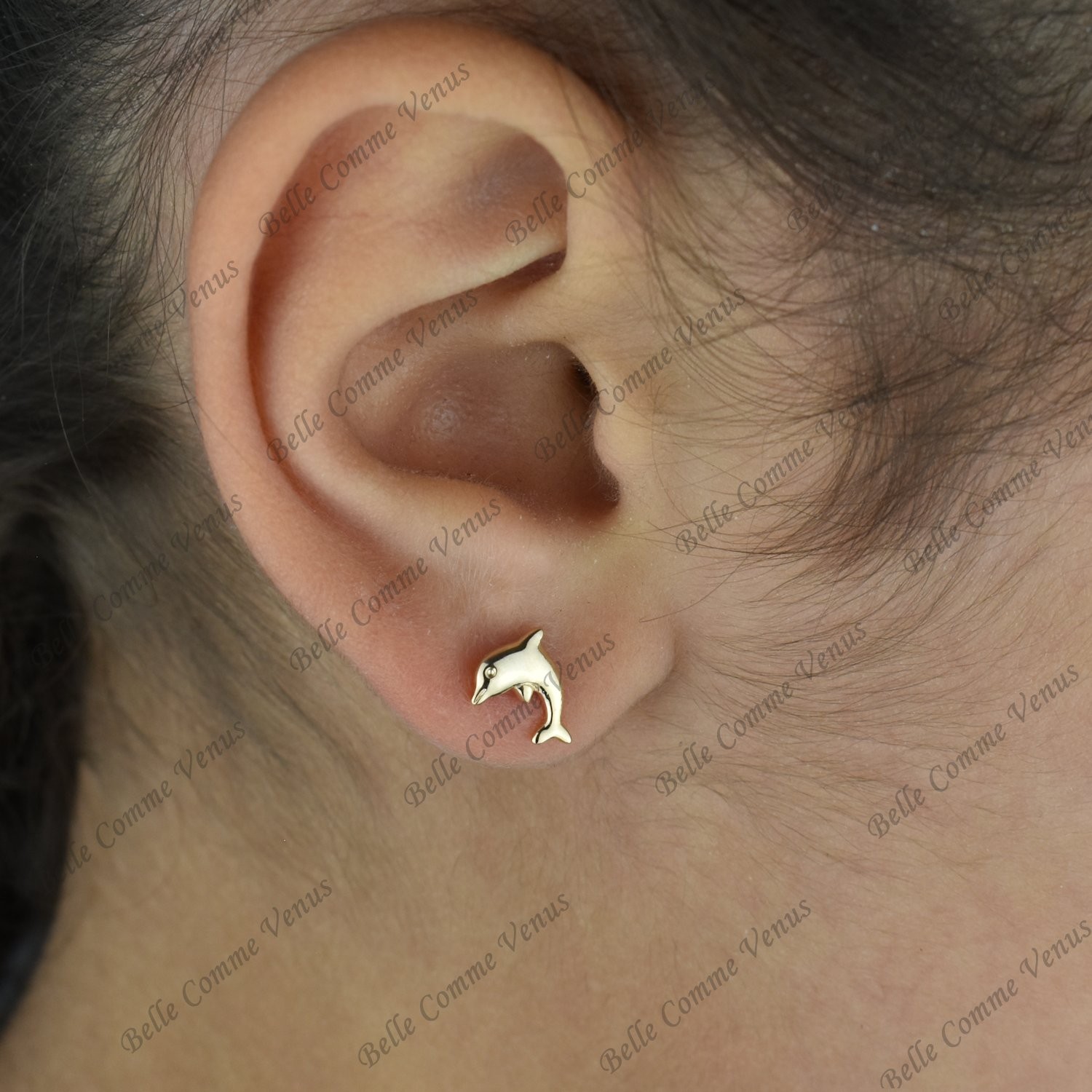 Boucles oreilles dauphin enfant plaqué or : magie marine et grâce