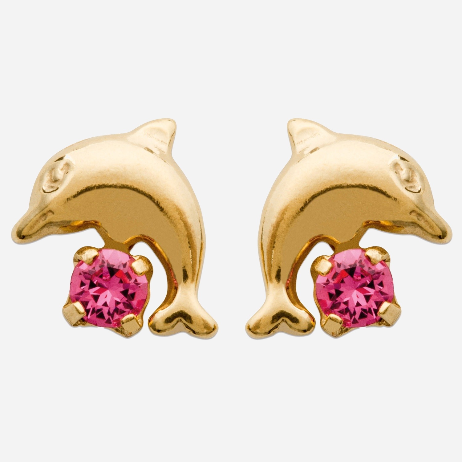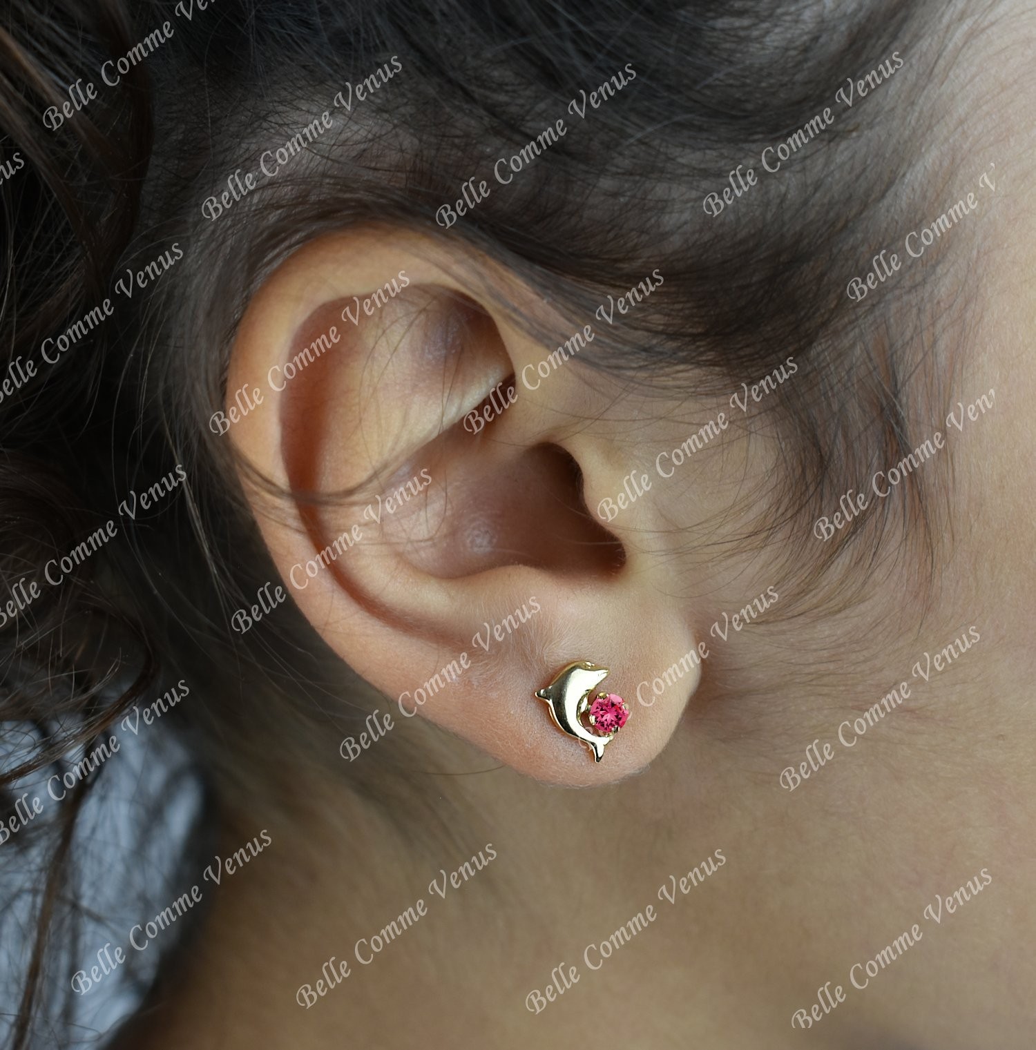 Boucles d’Oreilles Dauphin Rose Plaqué Or Enfant : La Magie Marine