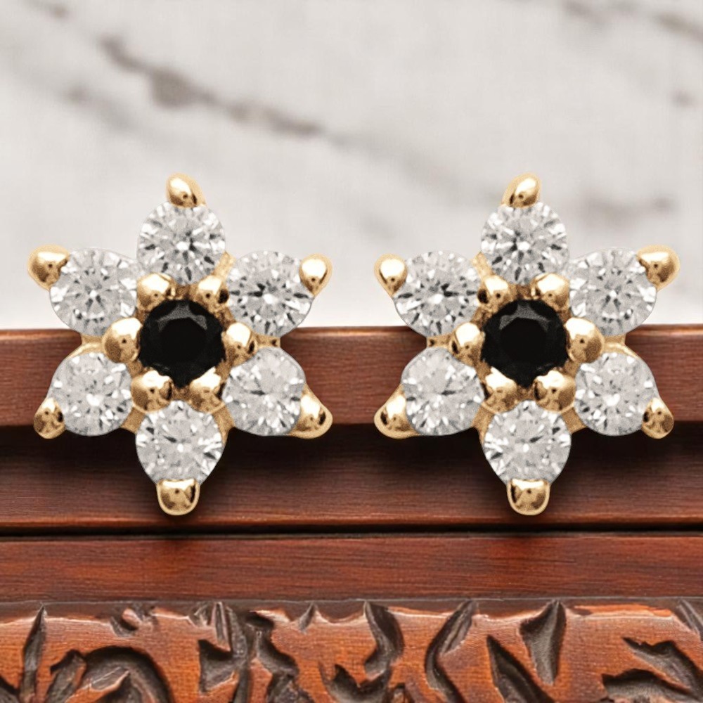De petites fleurs ornées d’oxydes de zirconium blancs et noir en plaqué or 750 – 3 microns, spécialement conçues pour les oreilles d’enfant. Ce jeu de contraste bicolore crée une sophistication délicate qui sort des créations classiques monochromes.