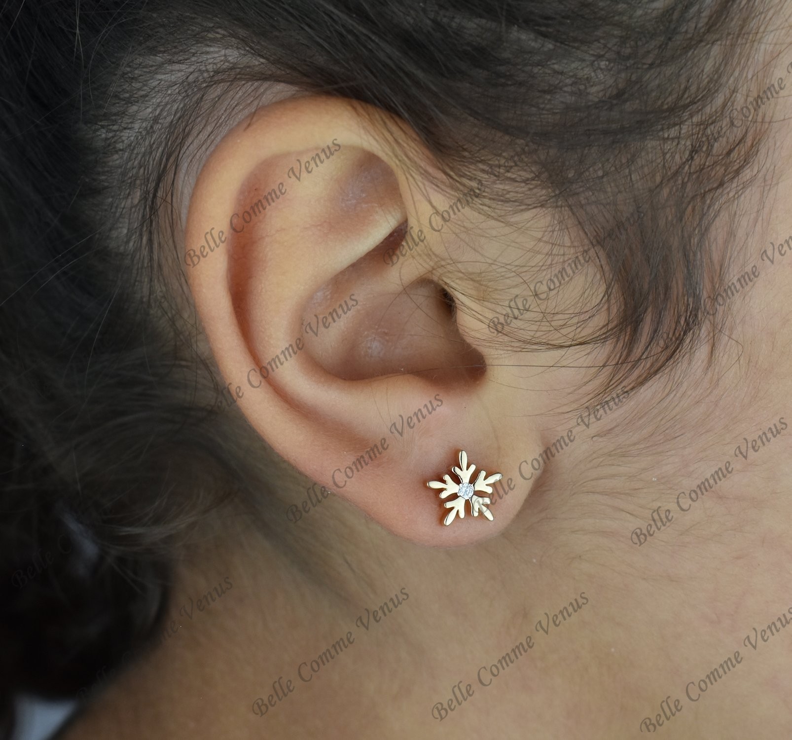 Boucles d’Oreilles Flocon de Neige Plaqué Or : La Magie Hivernale