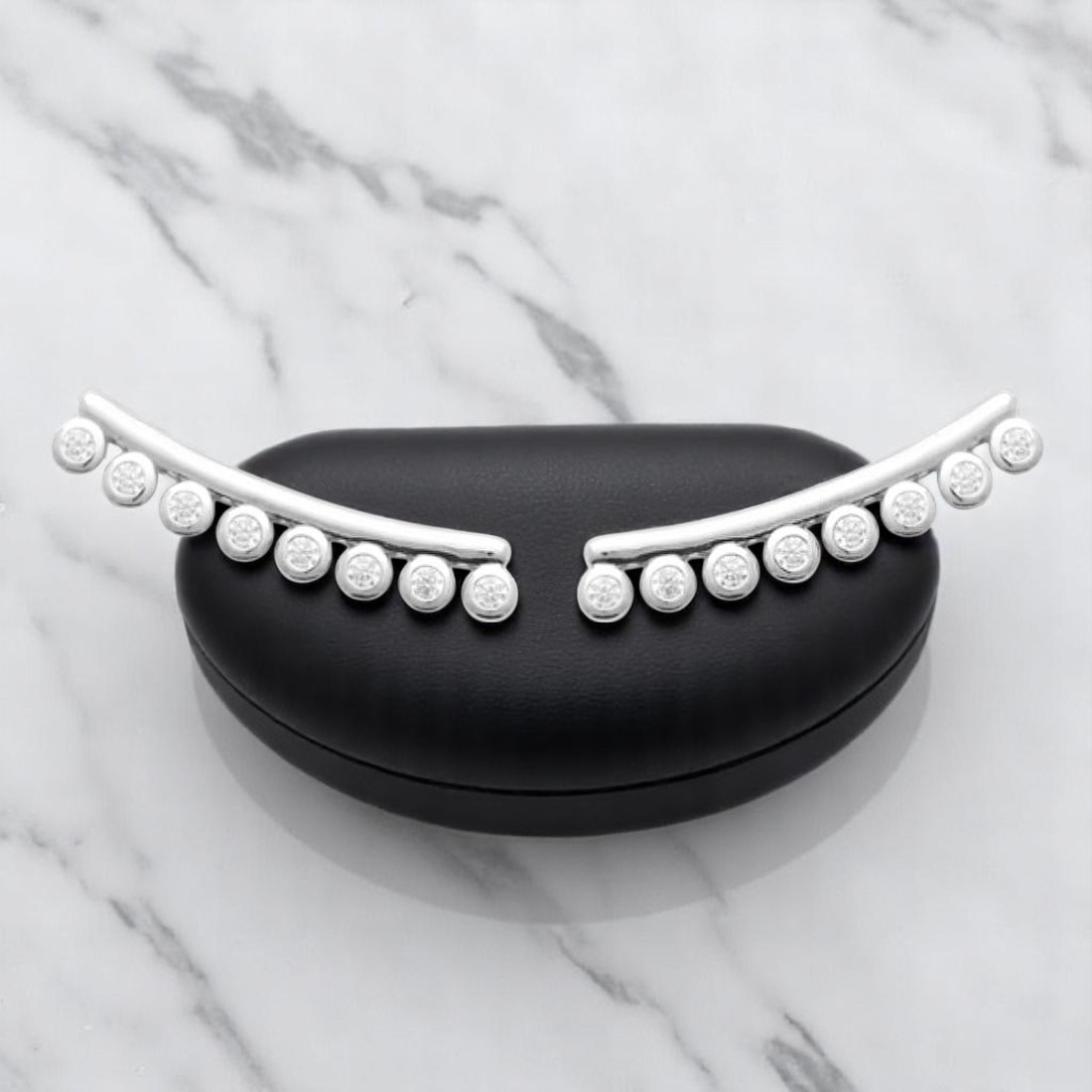 Le motif serti suit harmonieusement la courbe naturelle de l’oreille, tandis que le crochet invisible à l’arrière assure un maintien discret et confortable. L’argent 925 rhodié garantit brillance durable, et les oxydes de zirconium offrent l’éclat du diamant. Des boucles grimpantes qui réinventent l’élégance avec audace et légèreté.