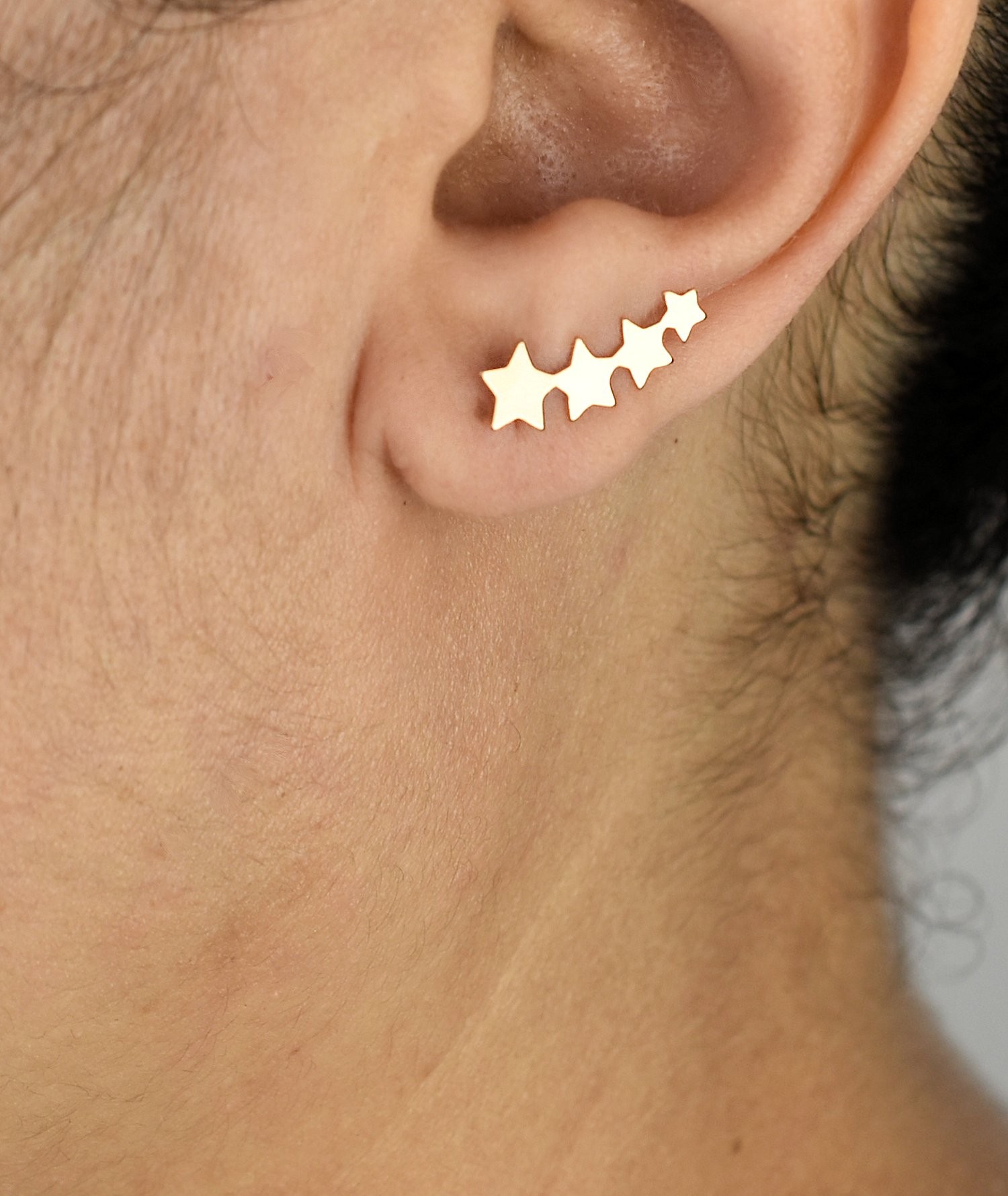 Les boucles d’oreilles grimpantes étoiles plaqué or incarnent la magie et la modernité. Ce contour de lobe avec suite d’étoiles en plaqué or 750 3 microns capture l’élégance céleste dans une silhouette contemporaine et délicate.