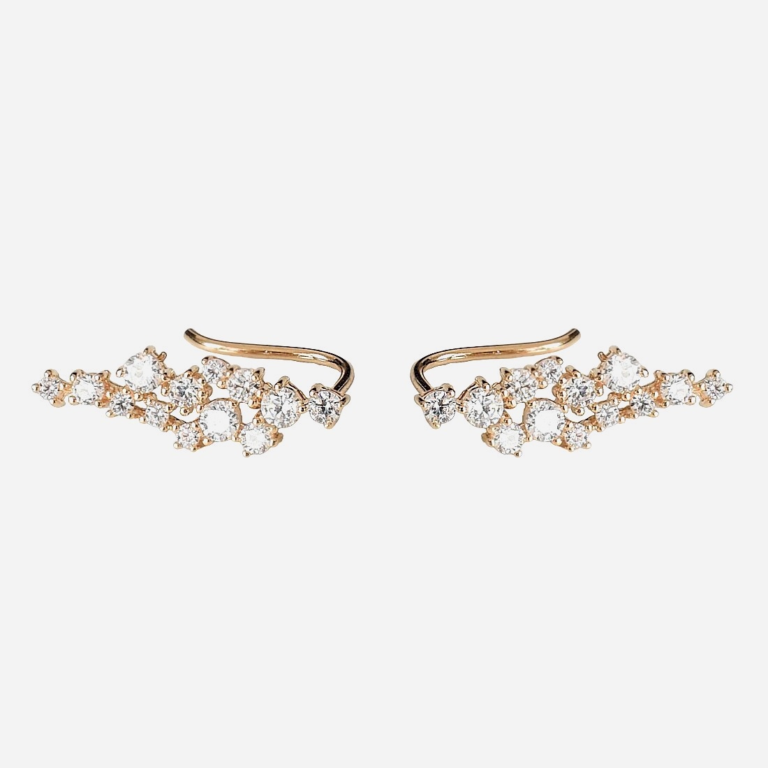 Le motif cascade suit harmonieusement la courbe naturelle de l’oreille, tandis que le crochet invisible à l’arrière assure un maintien discret et confortable. Le plaqué or 750 3 microns garantit éclat durable, et la cascade d’oxydes de zirconium diffuse une brillance diamant éblouissante. Des boucles grimpantes qui réinventent l’élégance avec audace et légèreté lumineuse.