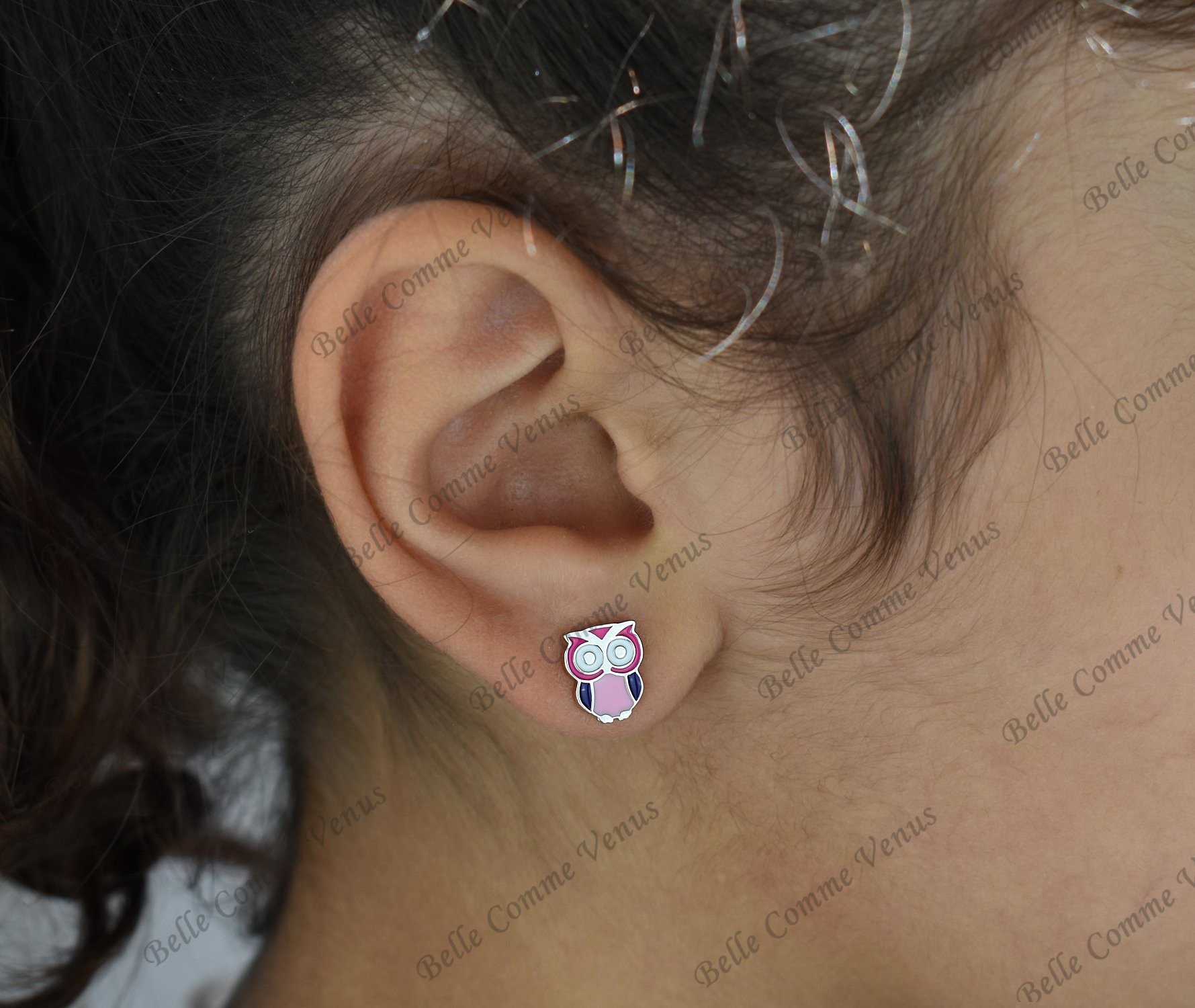Offrez à votre enfant une paire de boucles d'oreilles hibou en émail coloré qui ajoutera une touche de fantaisie et de charme à son look. Nos boucles d'oreilles en argent 925 rhodié sont spécialement conçues pour les oreilles délicates de votre enfant.