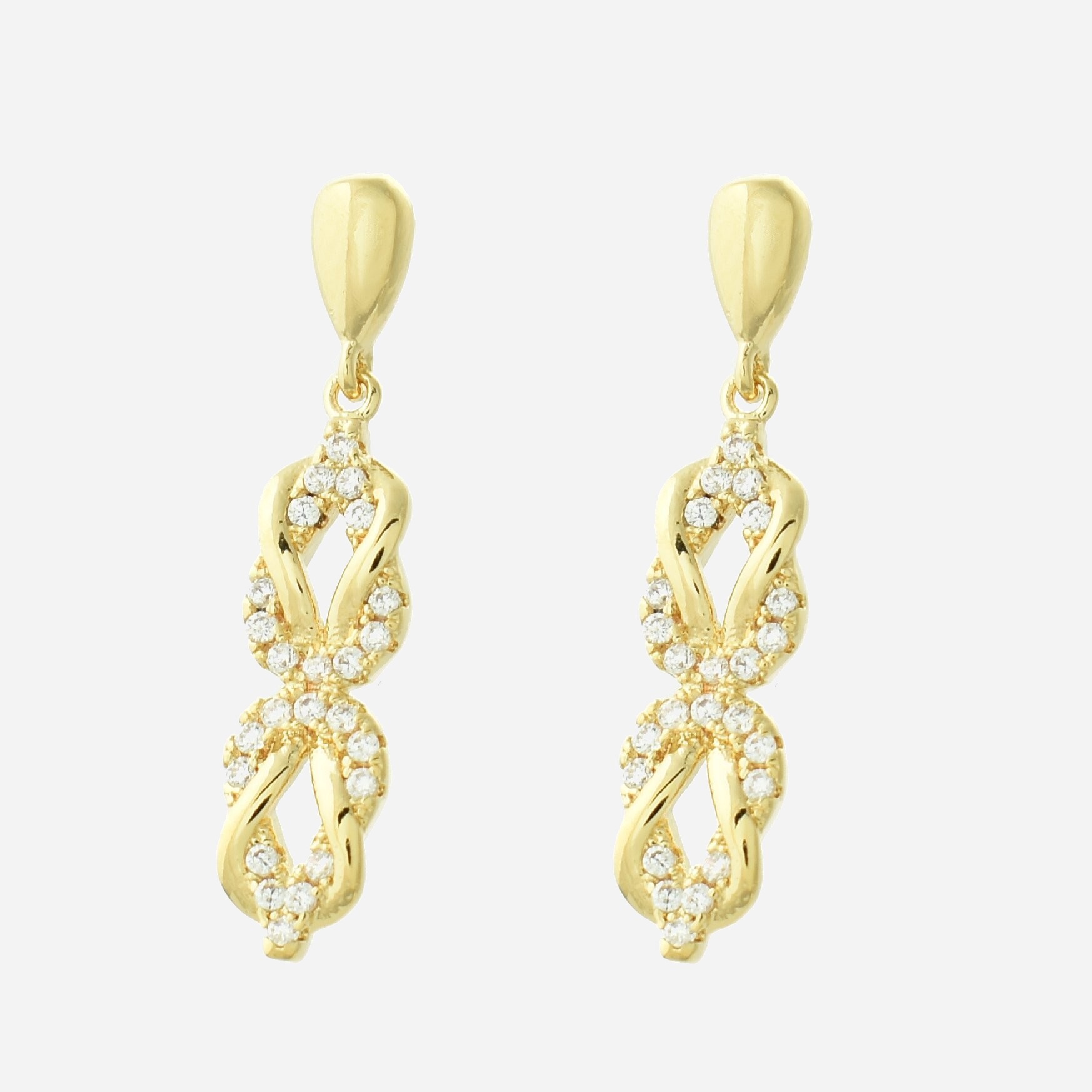 Boucles d’oreilles infini noeud oxyde zirconium plaqué or : éternité féminine scintillante