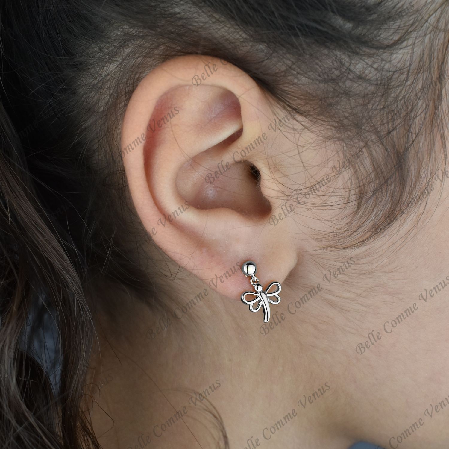 Des boucles d’oreilles libellule enfant argent 925 pleines de magie naturelle