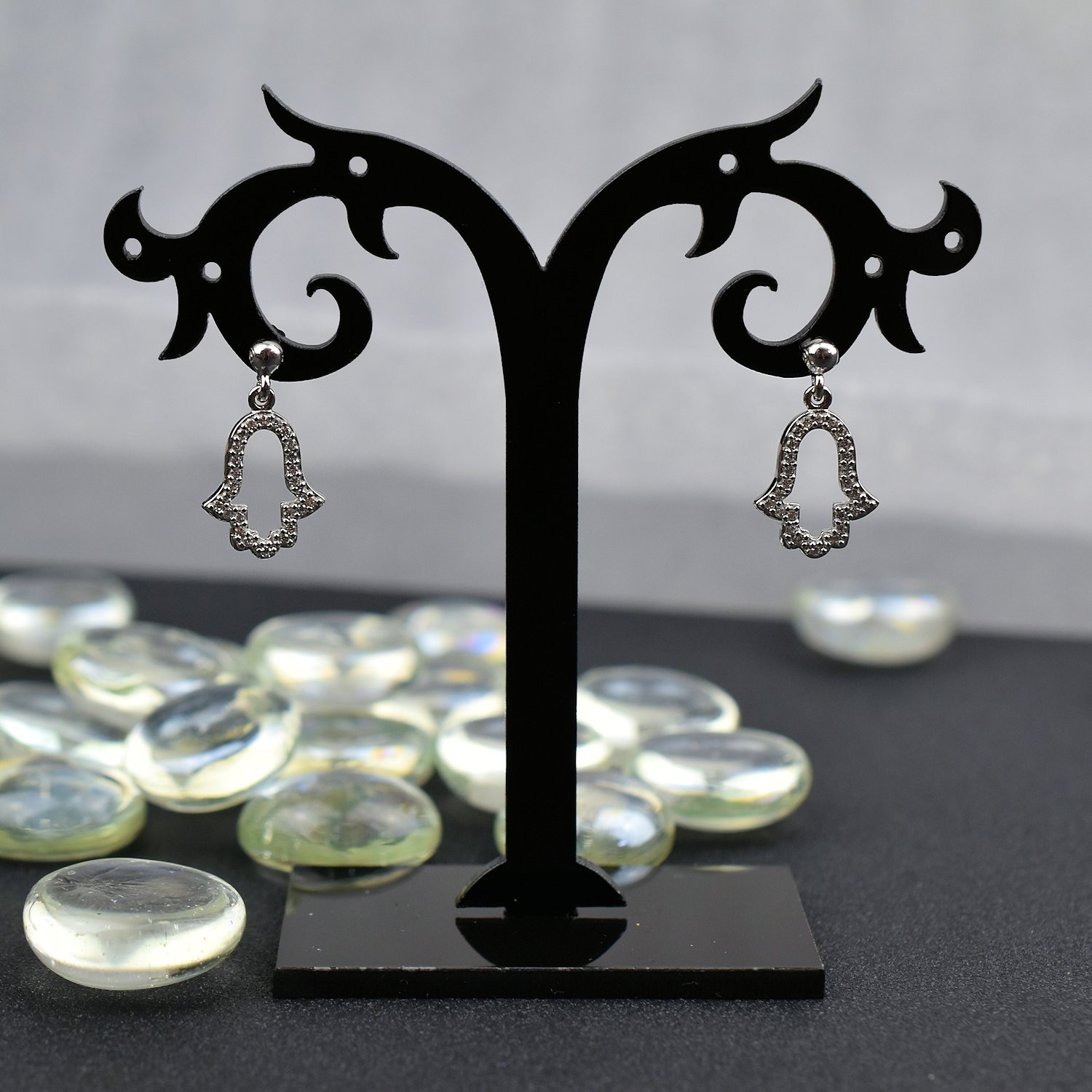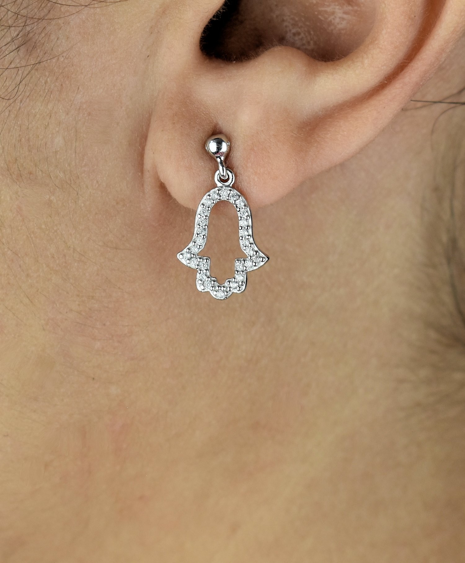 Les boucles d’oreilles main de Fatma argent célèbrent la protection ancestrale avec brillance. Ces boucles main de Fatma serties d’oxyde de zirconium en argent 925 rhodié capturent l’essence du symbole protecteur dans un design raffiné et scintillant.