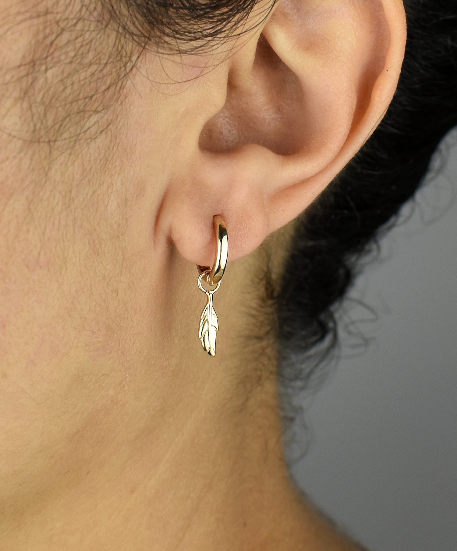 Boucles d’oreilles mini créoles plume pendante plaqué or : légèreté spirituelle