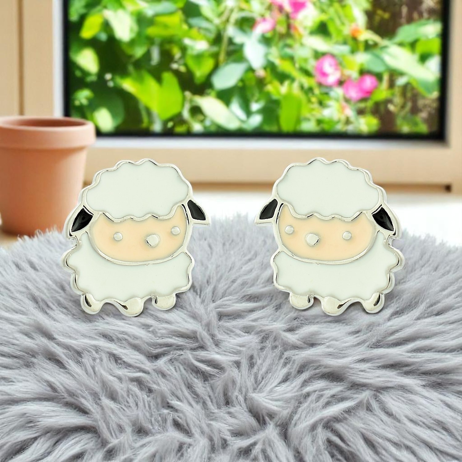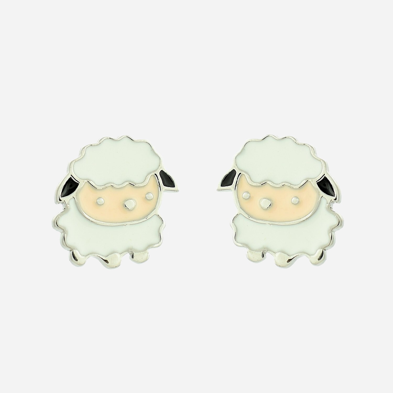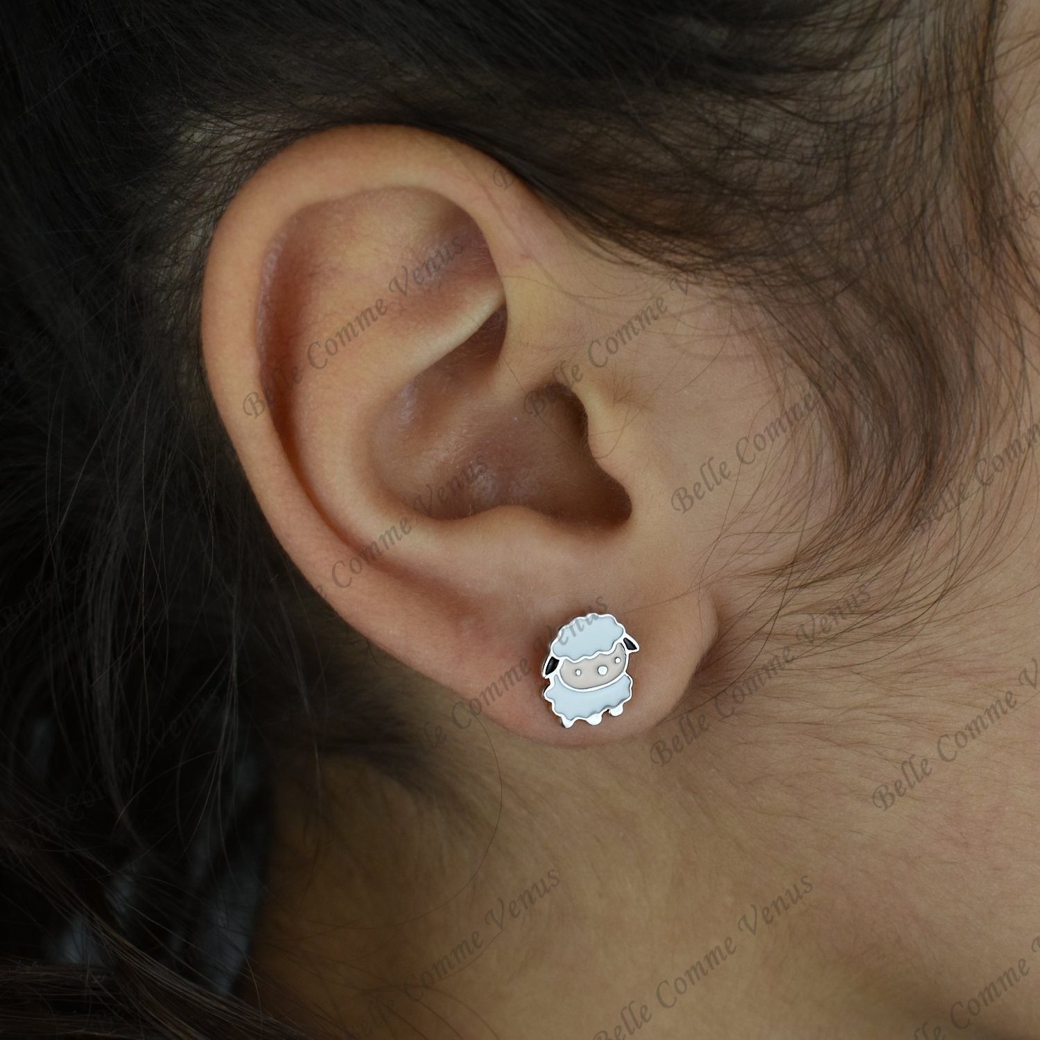 De petits moutons ornés d’émail coloré en argent 925 rhodié, spécialement conçus pour les oreilles d’enfant. Ces boucles miniatures capturent toute la tendresse de cet animal doux avec sa laine blanche caractéristique et son air attendrissant.
