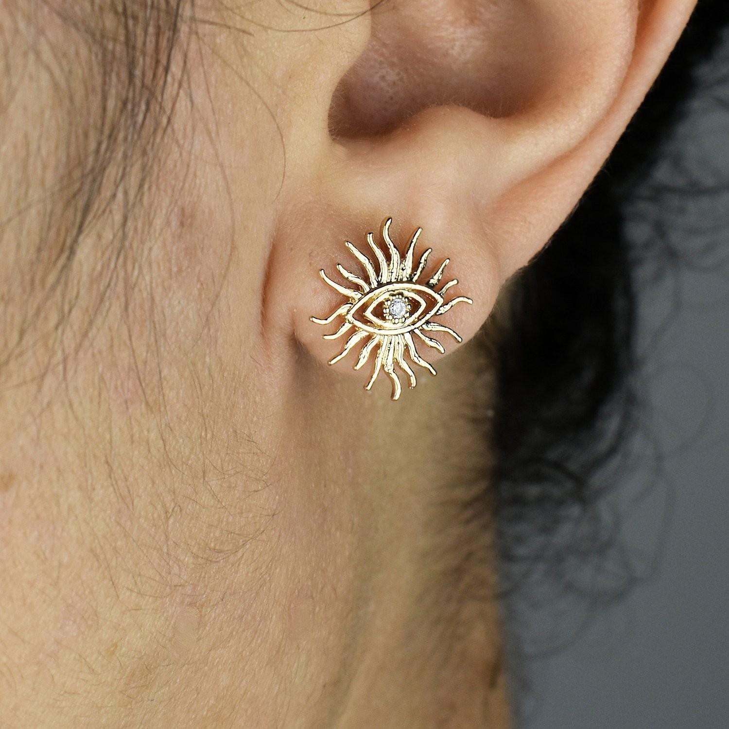 Parce qu’elles fusionnent deux symboles ancestraux de protection en un seul bijou éclatant. L’oeil représente cette vigilance bienveillante qui éloigne les énergies négatives, tandis que le soleil symbolise la lumière, la chaleur et la vie elle-même. Les zirconium ajoutent cette dimension scintillante qui sublime les symboles protecteurs. Le plaqué or enveloppe cette double protection d’une chaleur dorée précieuse. Portées, elles deviennent ce talisman lumineux qui vous accompagne : protection invisible et rayonnement visible réunis. C’est la spiritualité qui rencontre l’optimisme, la garde qui devient lumière.