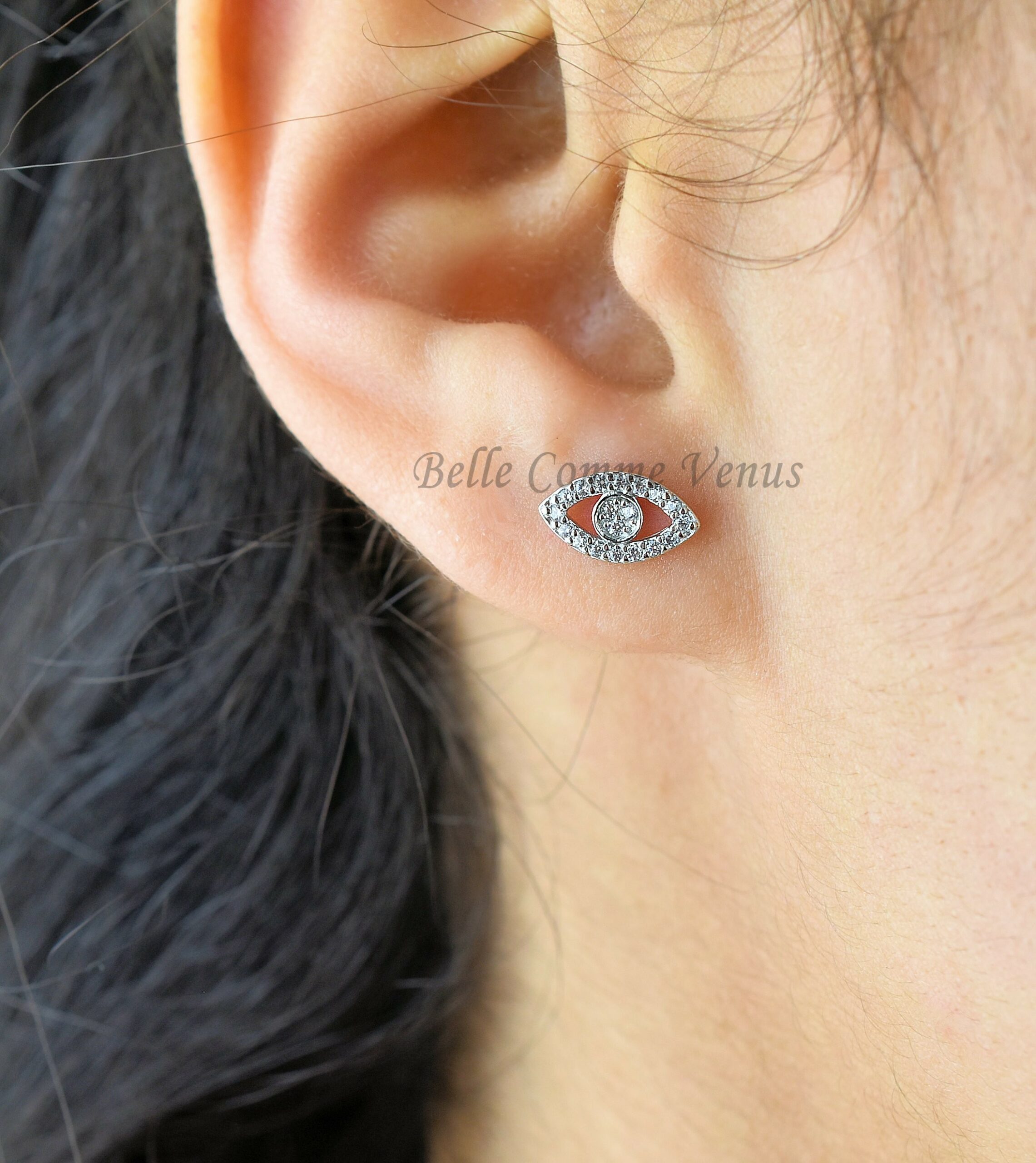 Boucles d’oreilles oeil symbole oxyde zirconium argent 925 : protection mystique scintillante