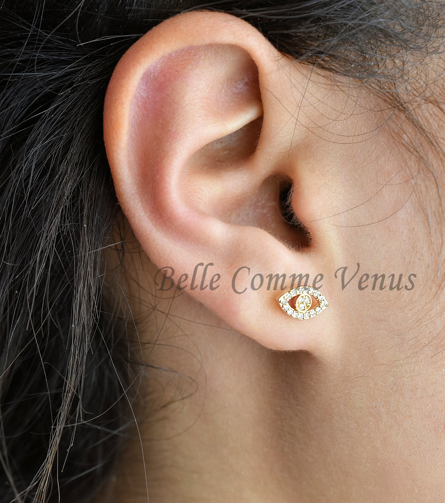 Boucles d’oreilles oeil symbole oxyde zirconium plaqué or : protection mystique