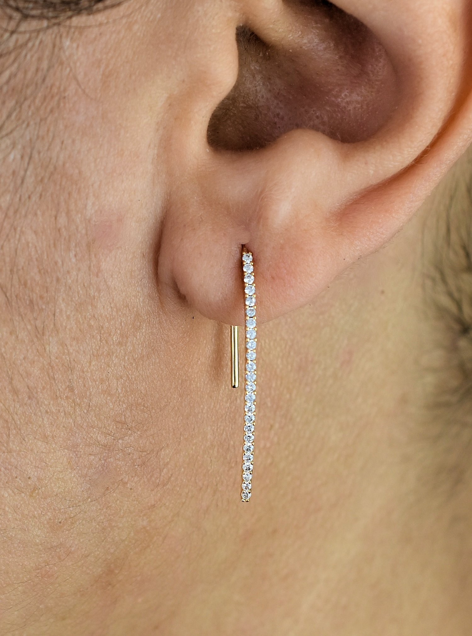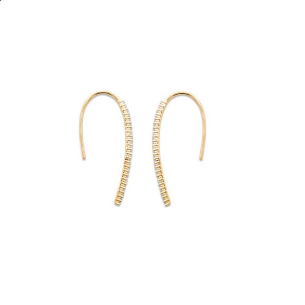 Une chute d’oxydes de zirconium qui cascade le long de votre oreille en plaqué or 750 – 3 microns. Cette cascade lumineuse crée un mouvement fluide et hypnotique, chaque pierre capturant et multipliant la lumière dans un ballet éblouissant.