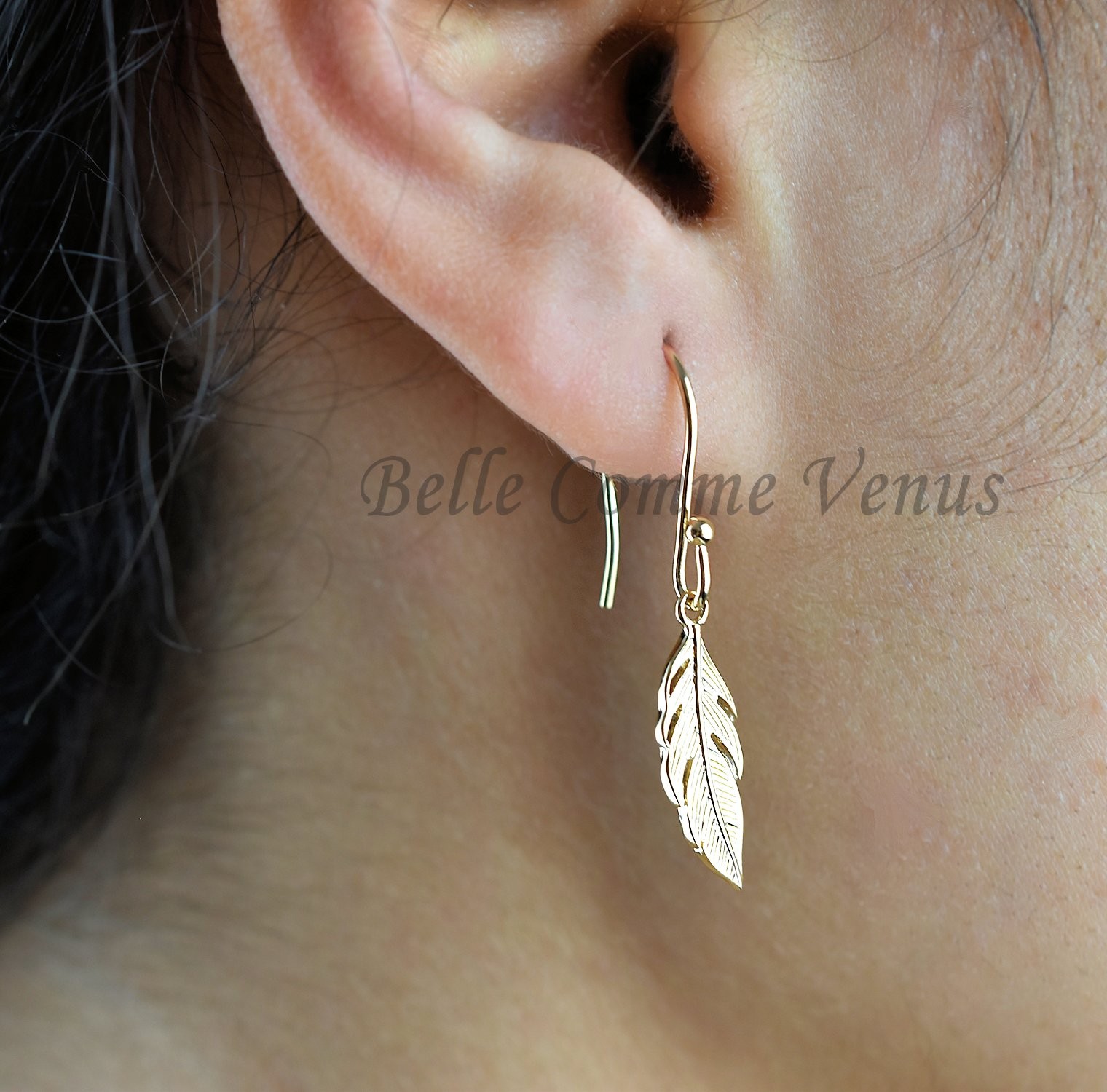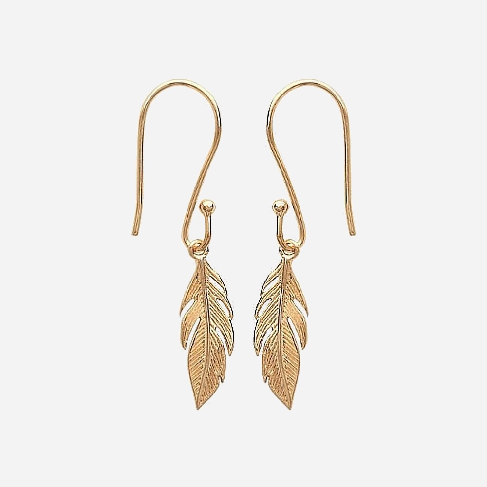 Boucles d’oreilles pendantes plume plaqué or : légèreté et liberté spirituelle