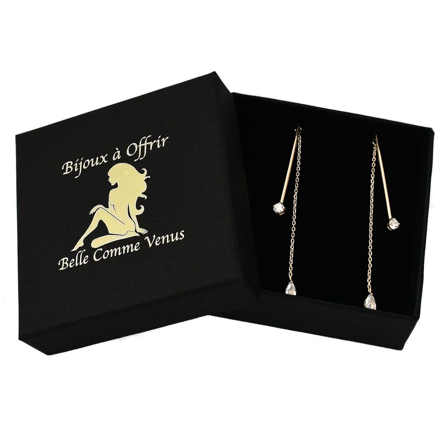 Découvrez nos superbes boucles d'oreilles pendants avec oxyde de zirconium sous lobe, plaqué OR 750 3 microns.