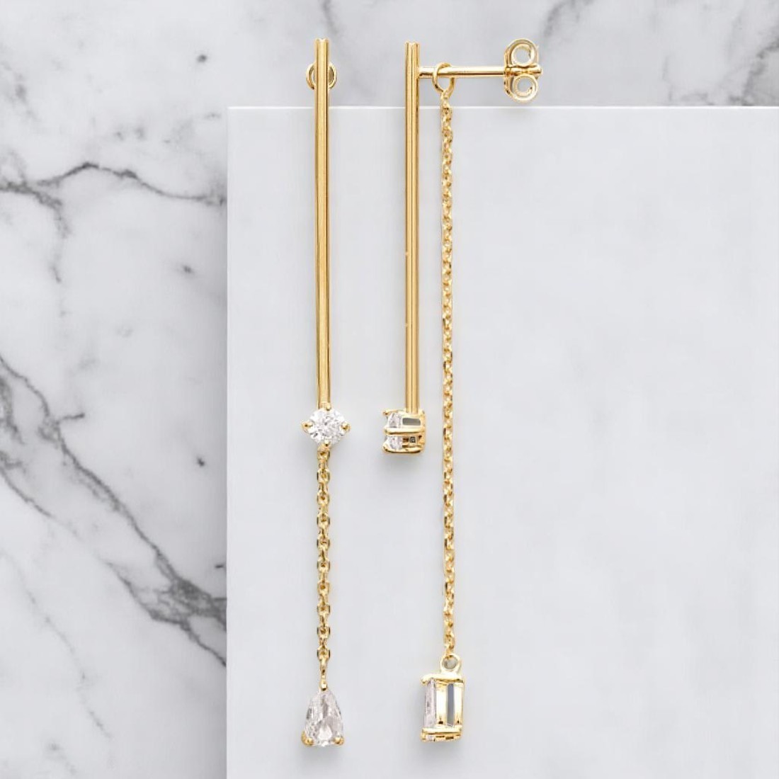 Boucles oreilles pendants plaqué or oxyde zirconium sous lobe : élégance moderne scintillante