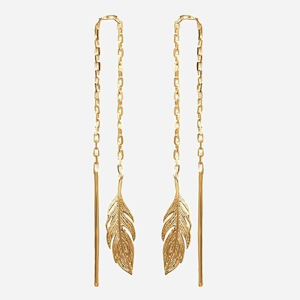 Boucles d’Oreilles Plaqué Or Plume Chaînes : L’Élégance Aérienne