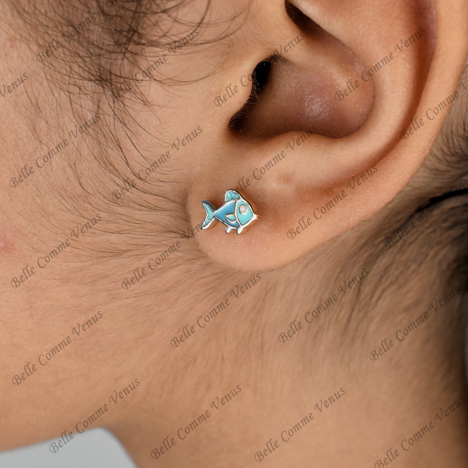 Les boucles d'oreilles enfant poisson émail coloré argent 925 rhodié sont des bijoux délicats qui apportent un charme marin et des couleurs éclatantes.