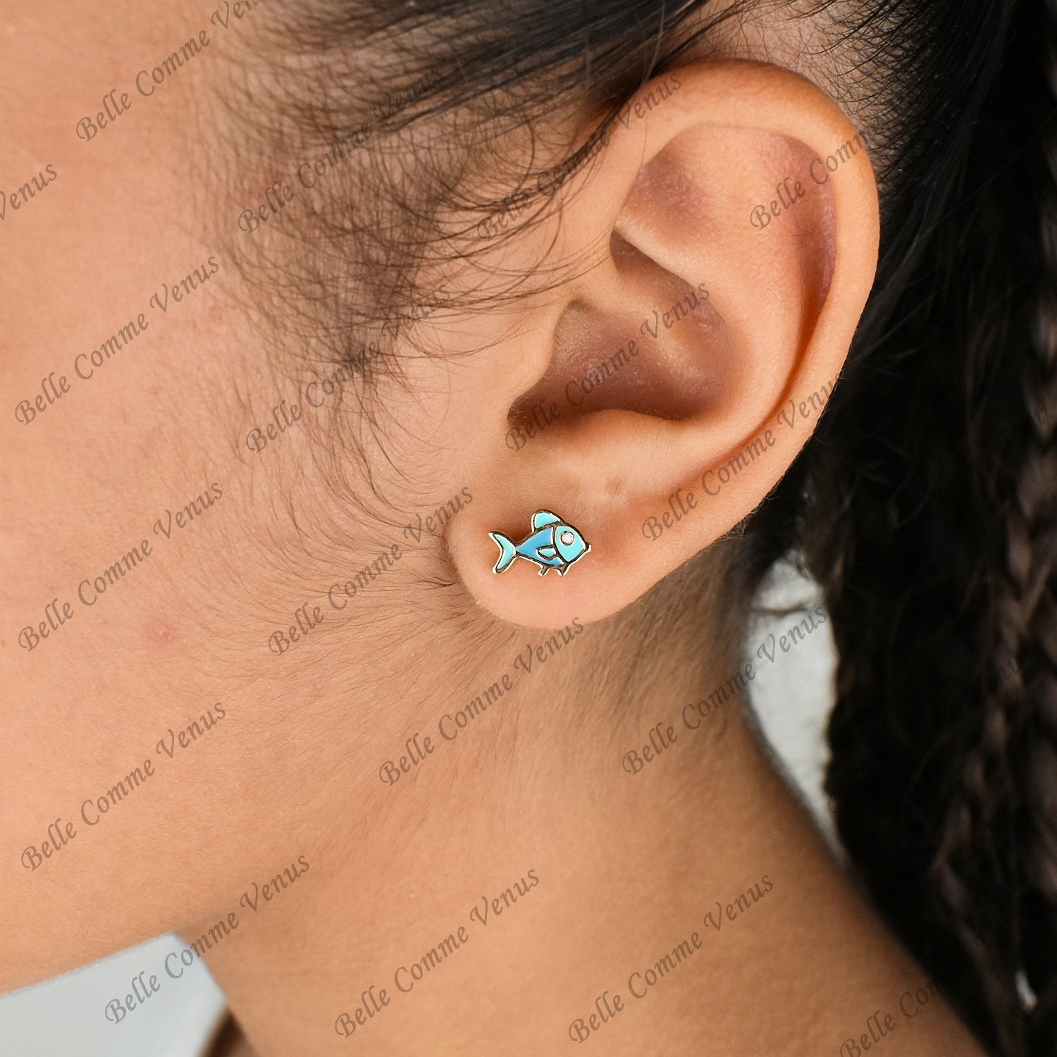Avec une hauteur de 0.7 cm et une largeur de 0.9 cm, ces boucles d'oreilles capturent l'essence de l'océan.