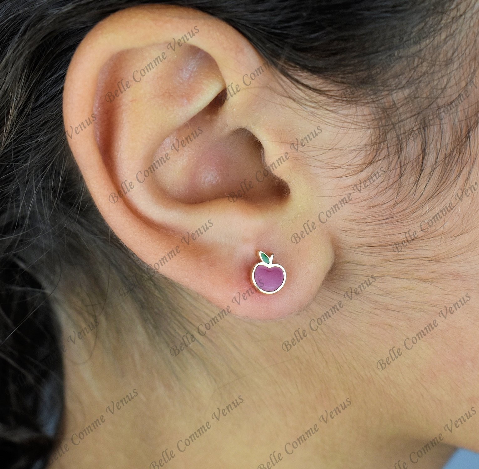 Les boucles d’oreilles pomme plaqué or 3 microns célèbrent la beauté de la nature avec délicatesse. Ces boucles d’oreilles émail rouge et vert en plaqué or 750 3 microns incarnent la vie, la liberté, l’équilibre et la sagesse dans un design raffiné.