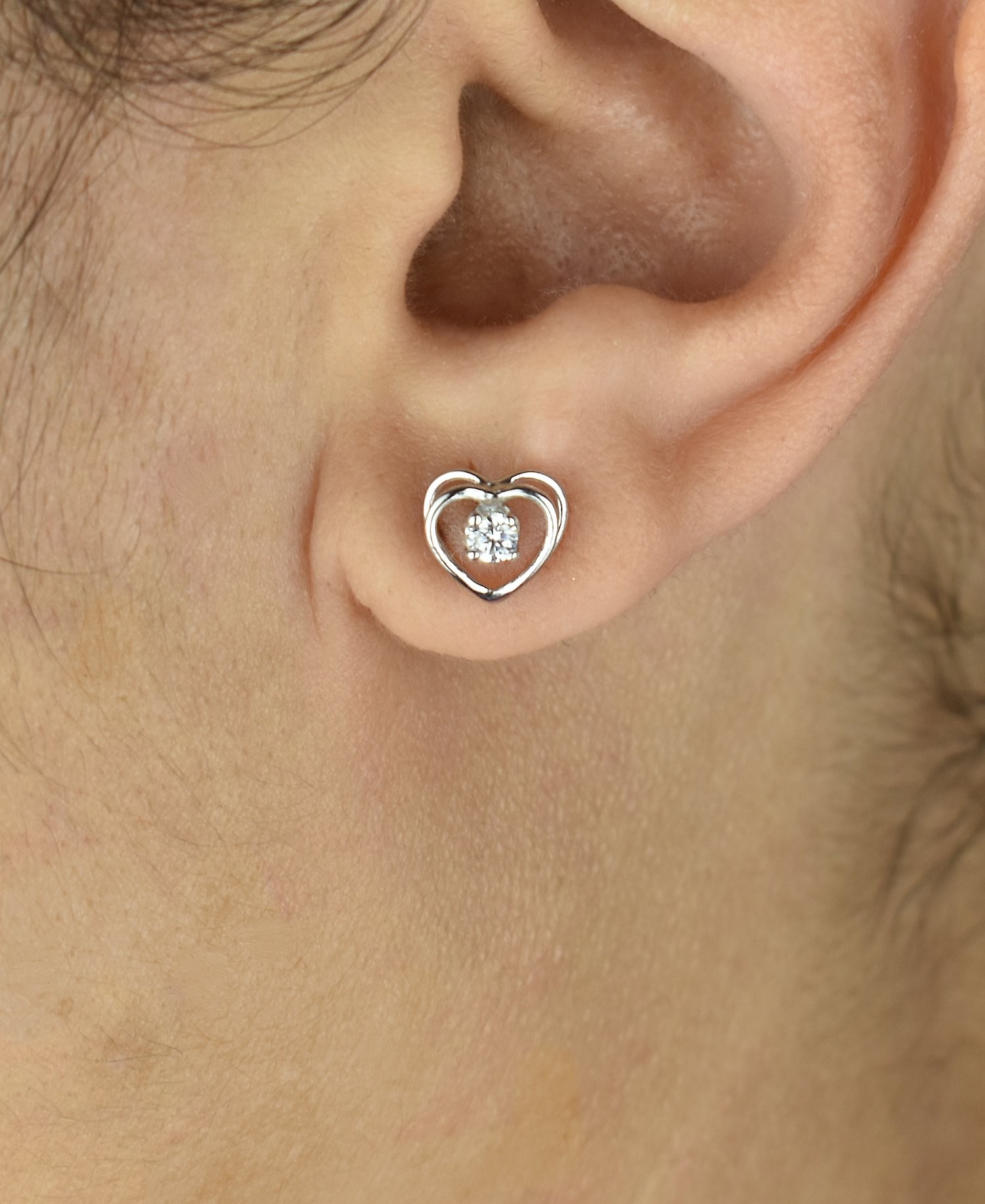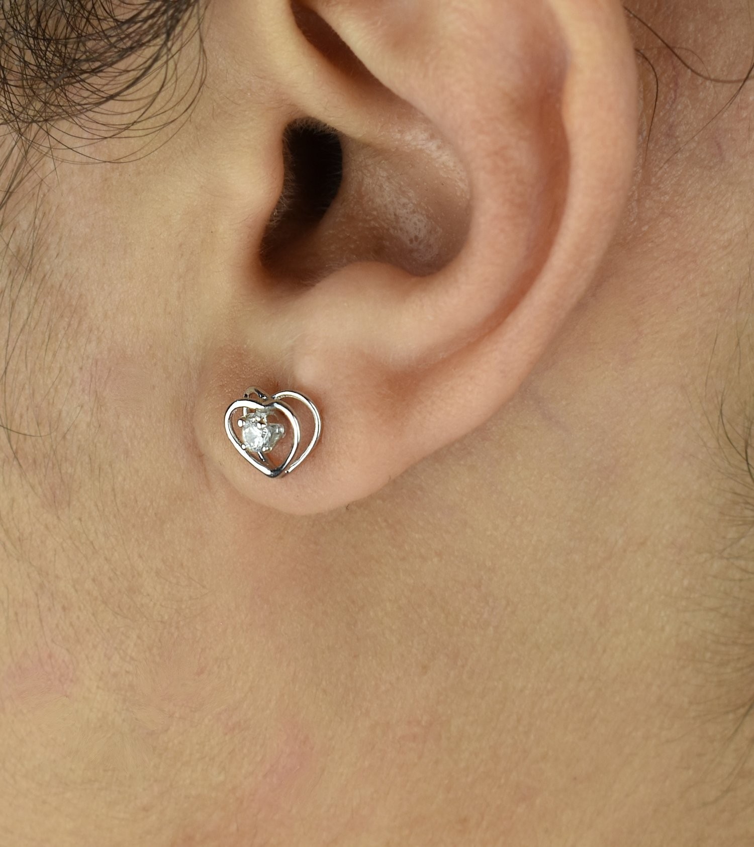 Boucles d’oreilles puce coeur oxyde zirconium argent 925 : amour discret scintillant
