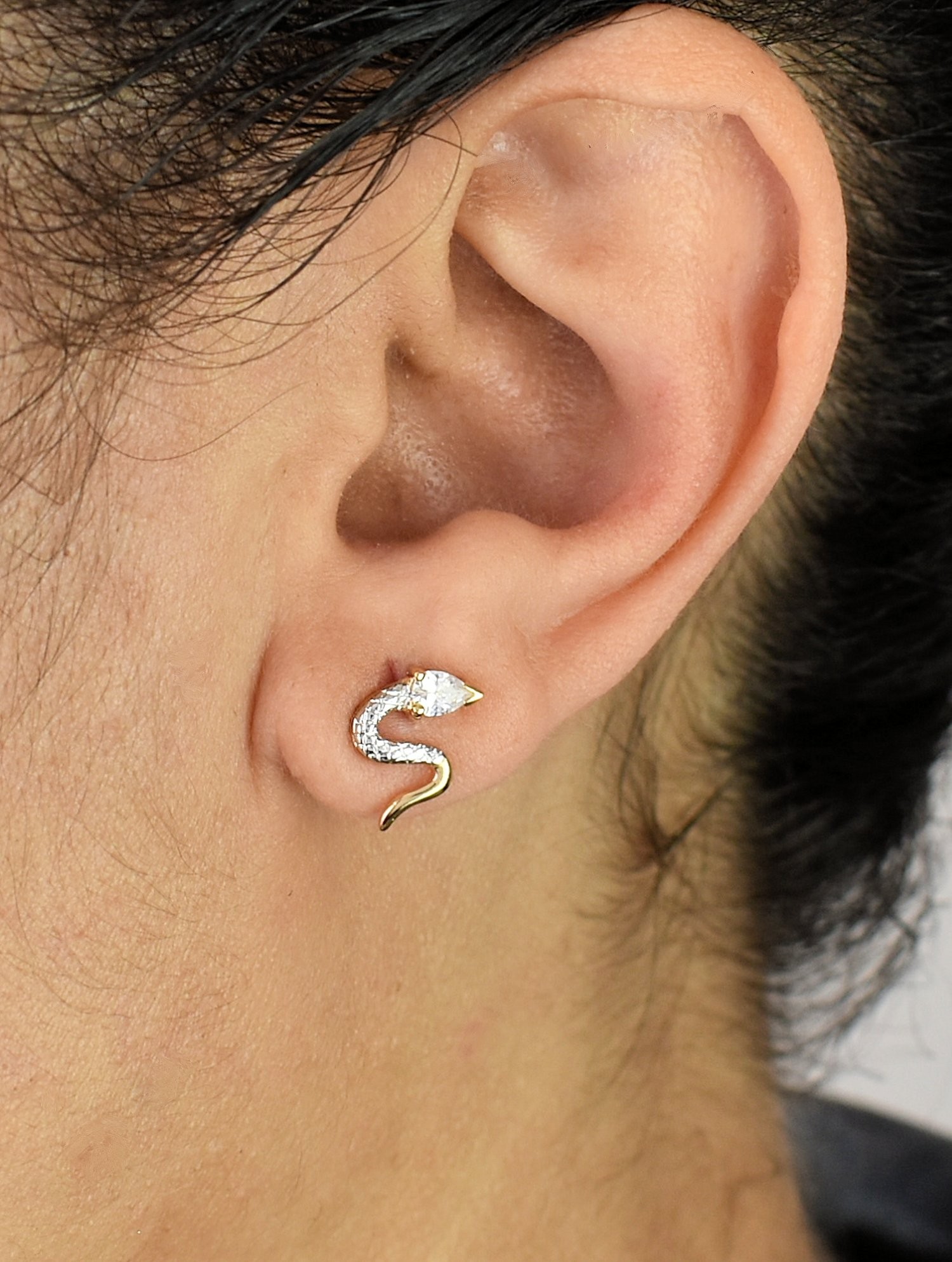 Boucles oreilles serpent plaqué or oxyde zirconium 2 tons : grâce audacieuse et mystérieuse