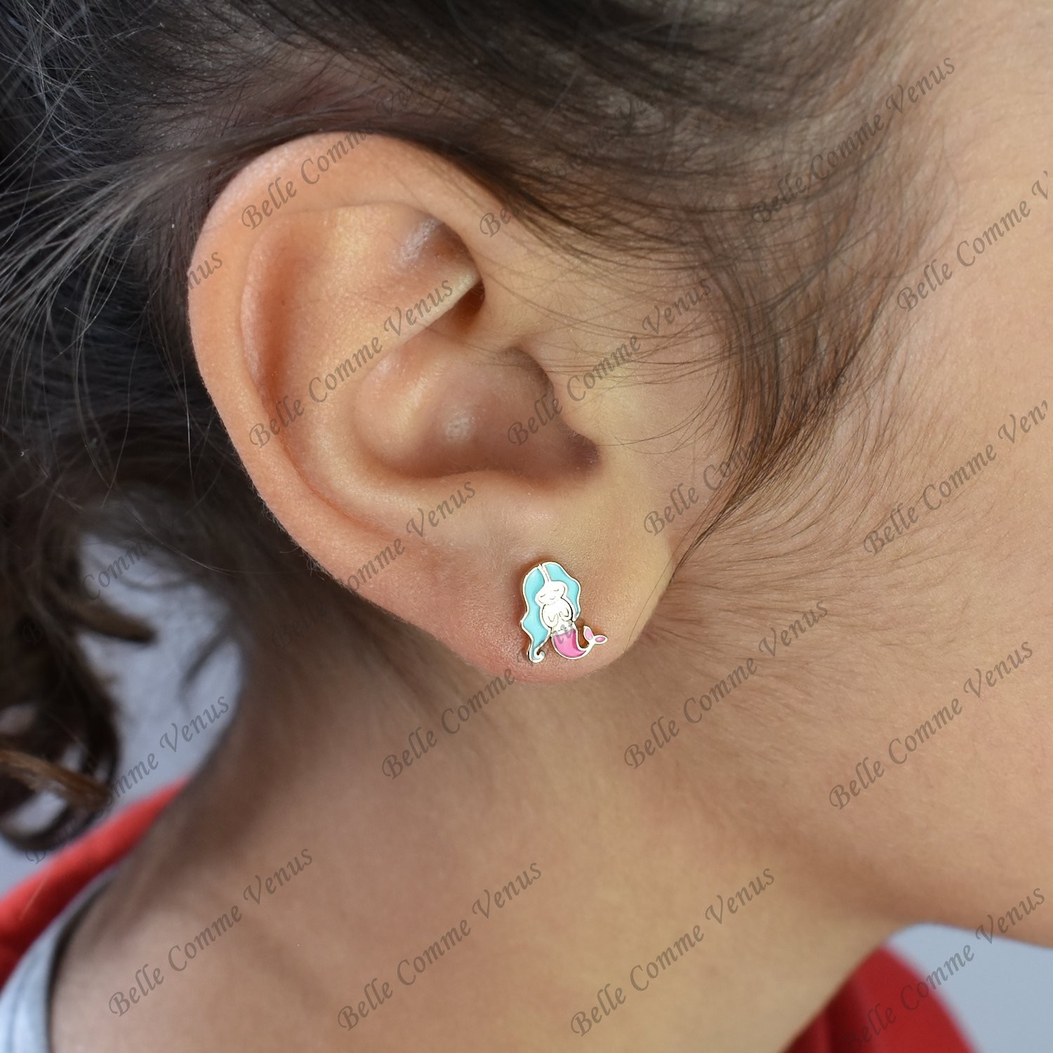 Des boucles d’oreilles sirène enfant plaqué or pleines de magie marine