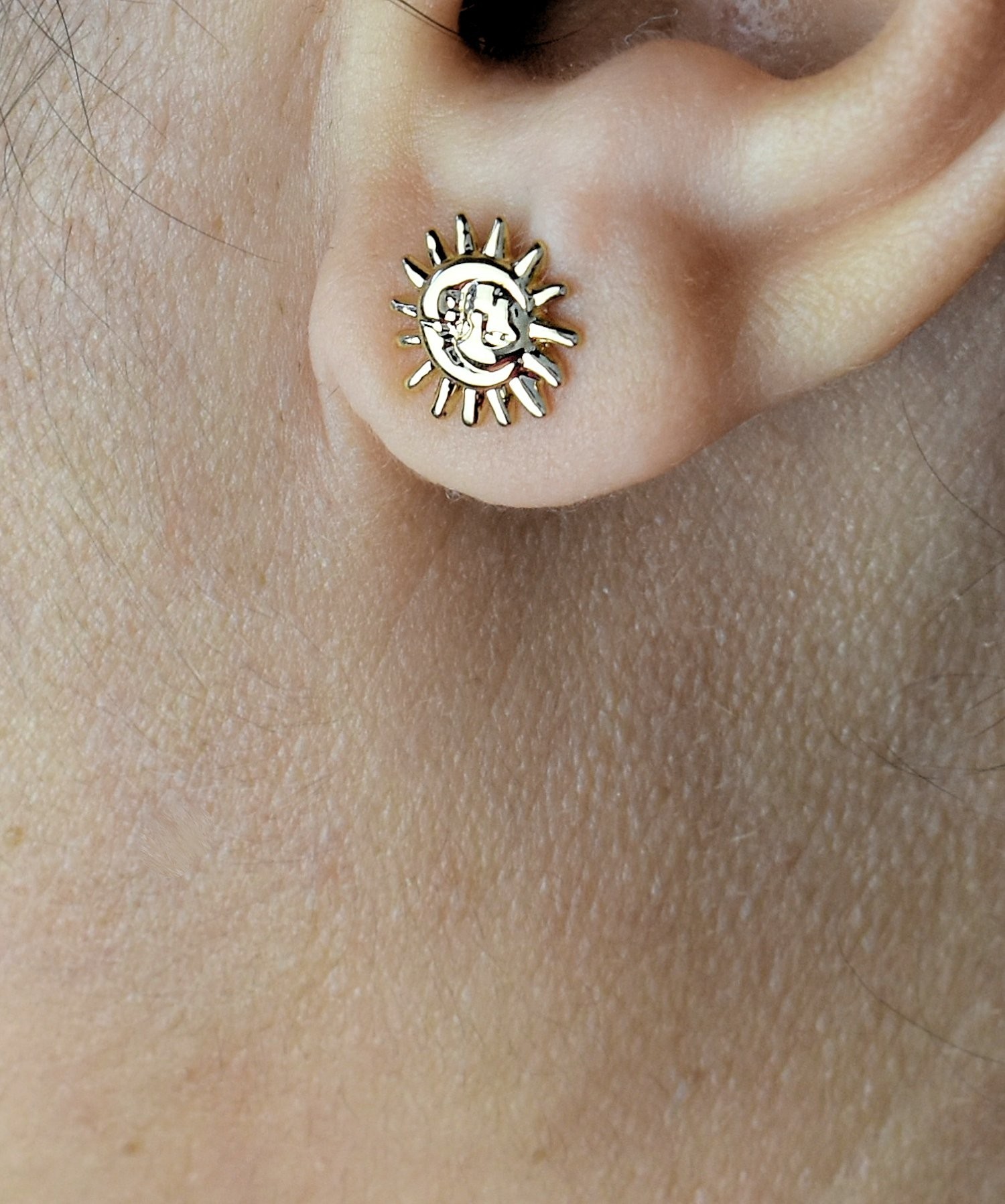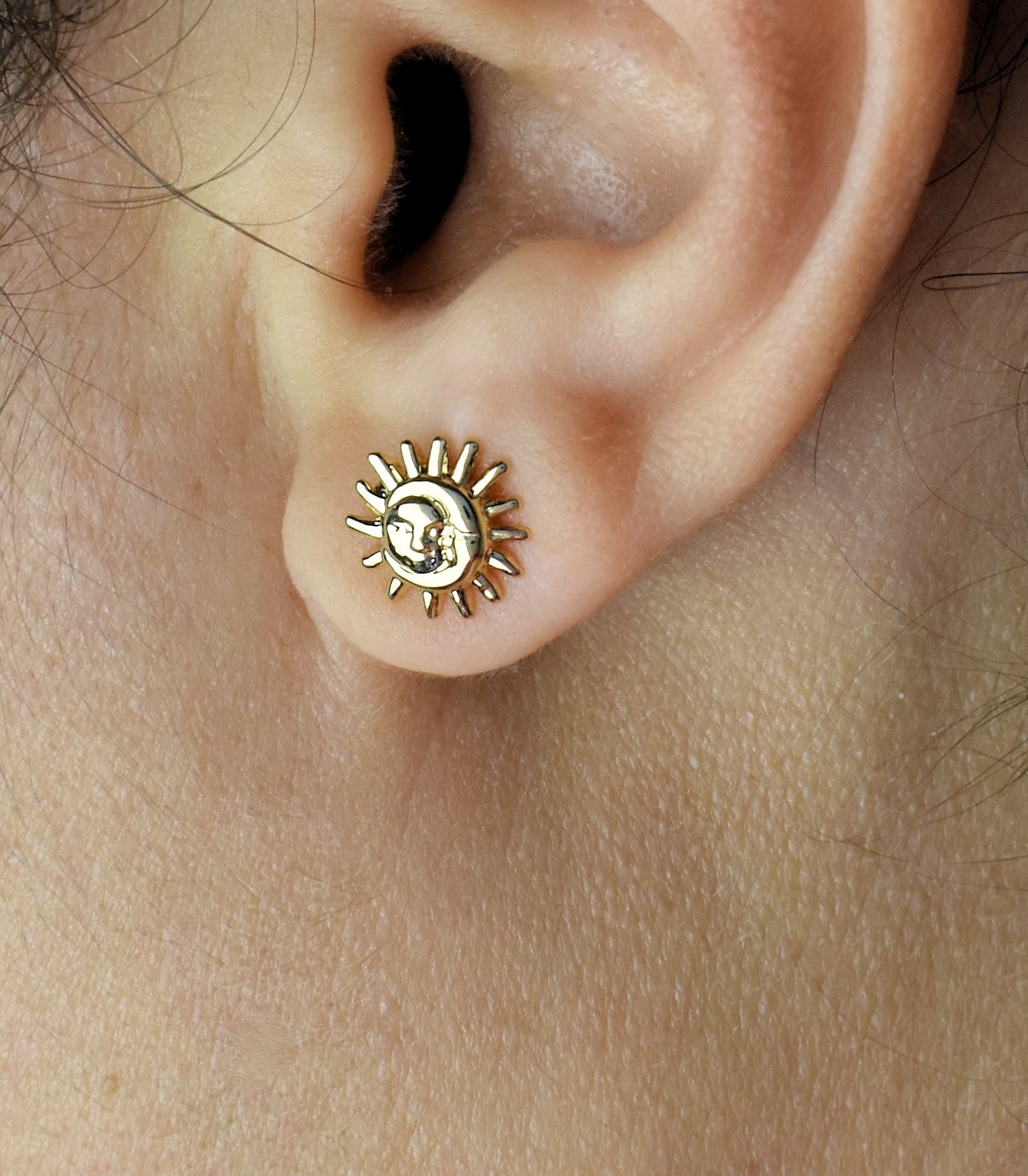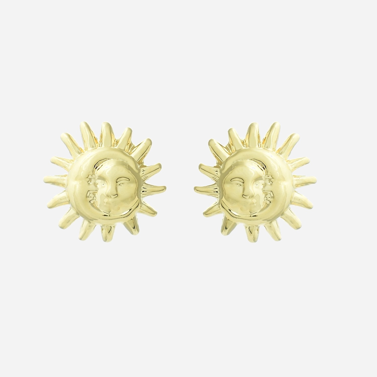 Boucles d’oreilles soleil lune plaqué or unis : dualité cosmique harmonieuse