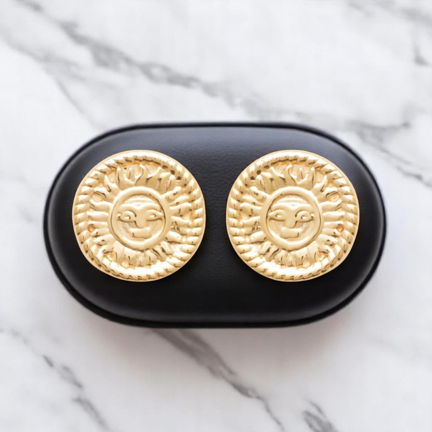 Boucles oreilles soleil plaqué or visage souriant : la bonne humeur à vos oreilles